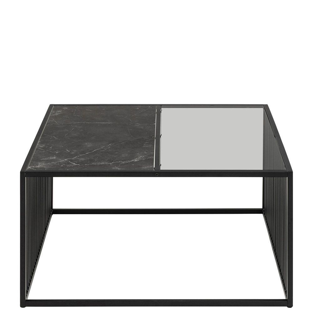 Item Code: 96000 This contemporary square coffee table is crafted from Izmir marble top along with glass and metal. The unique design features a black finish, helping to bring an element of style and sophistication to your space. Perfect for a modern living room, it offers a sleek, comfortable look without additional storage.
