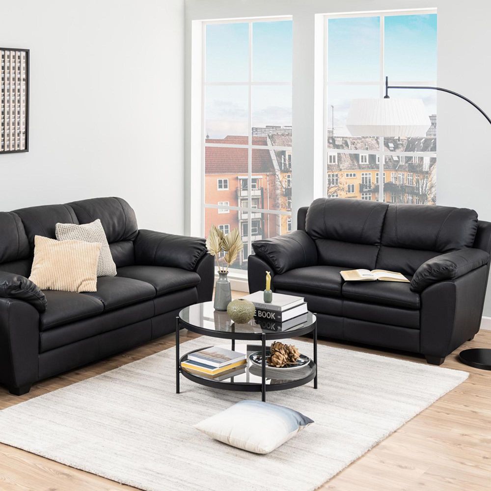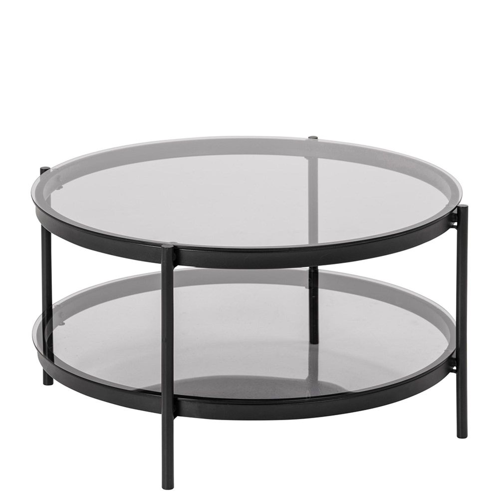Item Code: 87038 This stylish coffee table will perfectly fit in any room and decor, featuring a round glass top and intricate metal frame. With an elegant black finish and no storage shelves this contemporary piece makes a bold statement. Its single shelf allows easy access to books or magazines. Enjoy sophisticated style and practicality with this beautiful design.