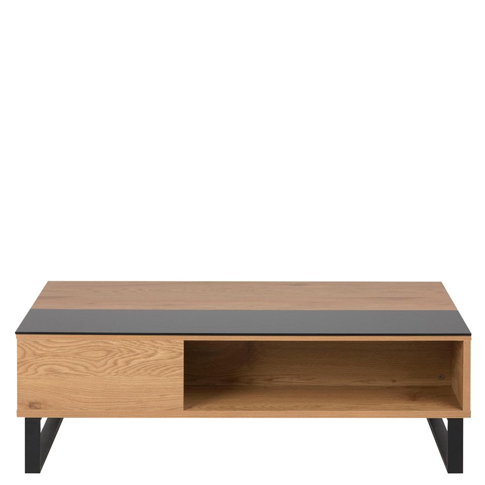 Item Code: 74541 This modern coffee table features a mix of contemporary and classic design, with a black and wild oak veneer finish. This lift-up top piece is perfect to display your favorite decorative items and it features one shelf for convenient storage. The perfect living room companion for your daily relaxation.
