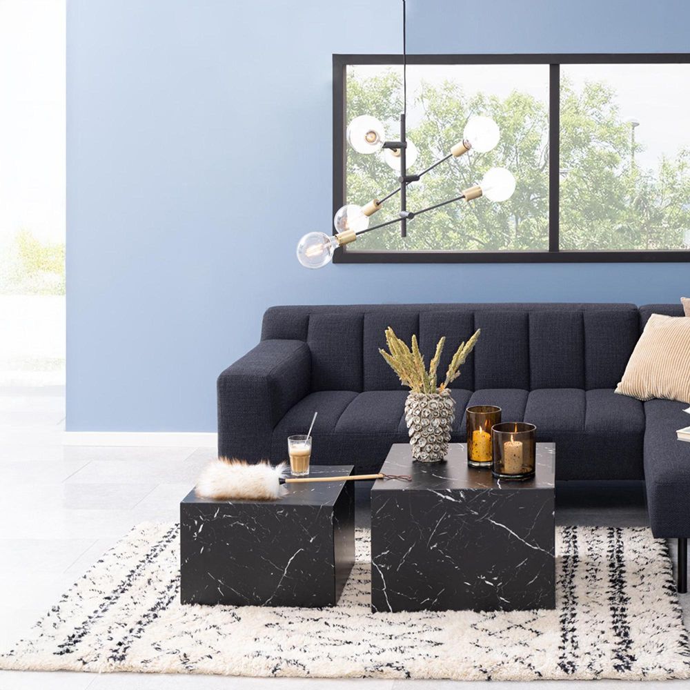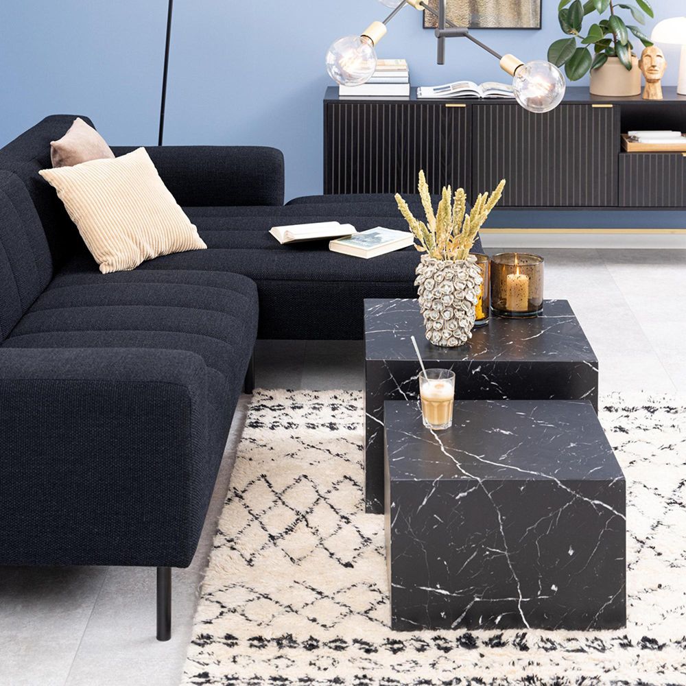 Dice Coffee Table - Round - Black Marble Effect - Set of 2