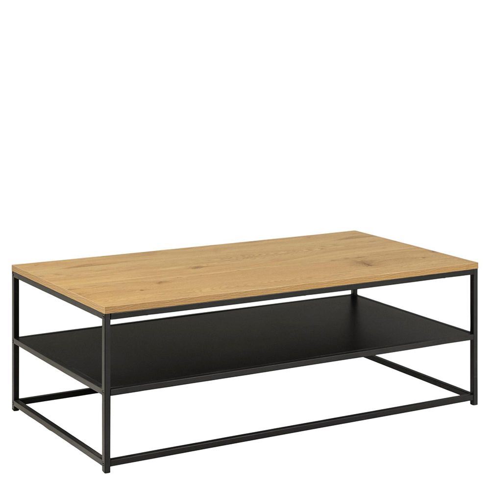 Item Code: 93304 This sleek and modern coffee table is the perfect addition to any living room. It has an attractive melamine top in a matt Wild Oak and Black finish, and metal legs that make it sturdy and durable. It also has one shelf and does not have any storage space. Ideal for any contemporary or minimalistic home.