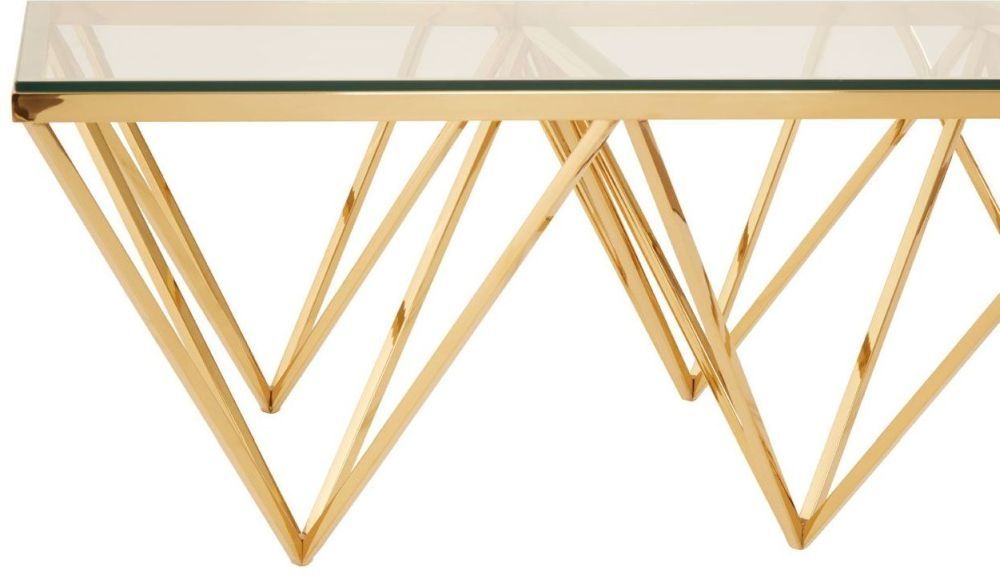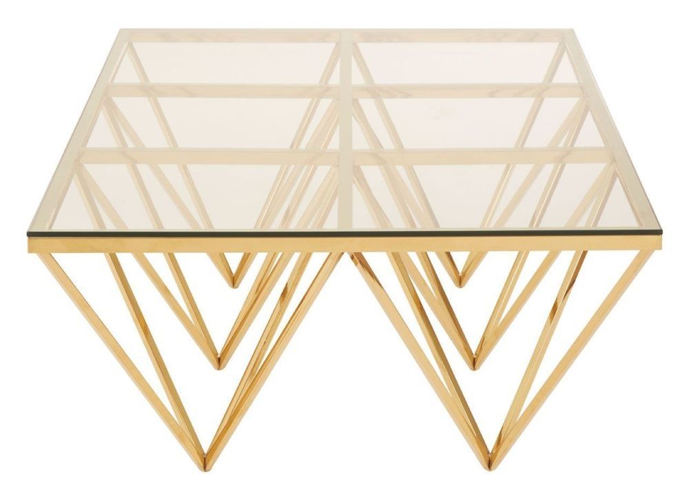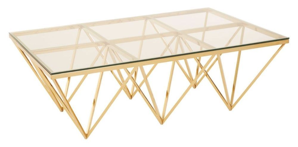 Allure Coffee Table - Glass - Gold Spike Triangle Base