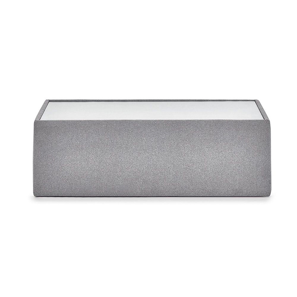 Item Code: ROH005 The Rohe Coffee Table will add a touch of class and style to any home. The table features platinum grey wool effect fabric with an exquisite rectangular glass top.