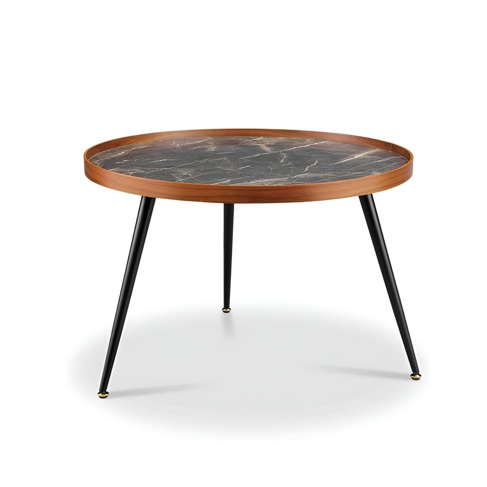 Siena Round Coffee Table - Walnut and Black Marble - JF328