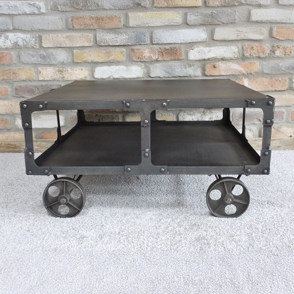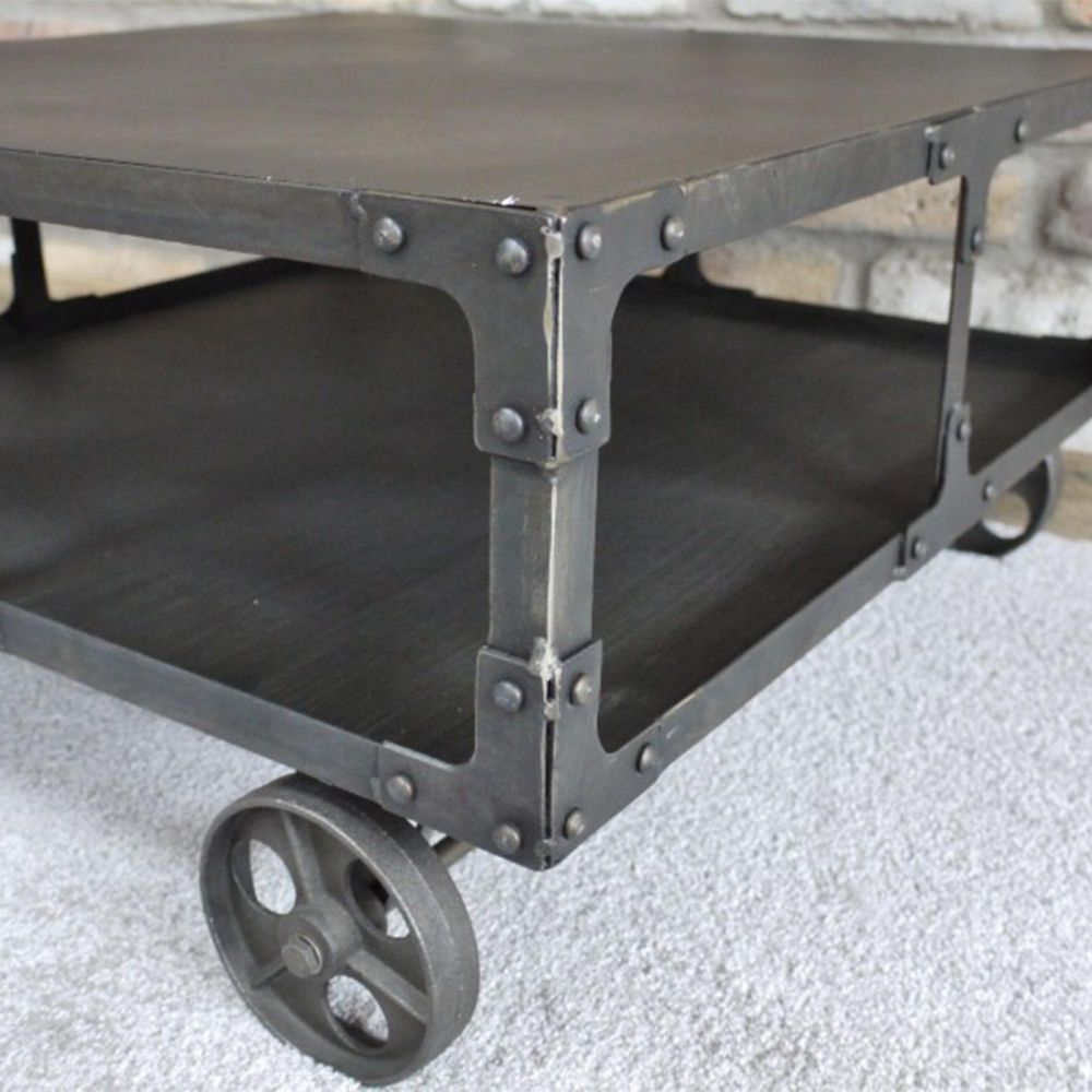 Coffee Table - Black Metal - Cart Style