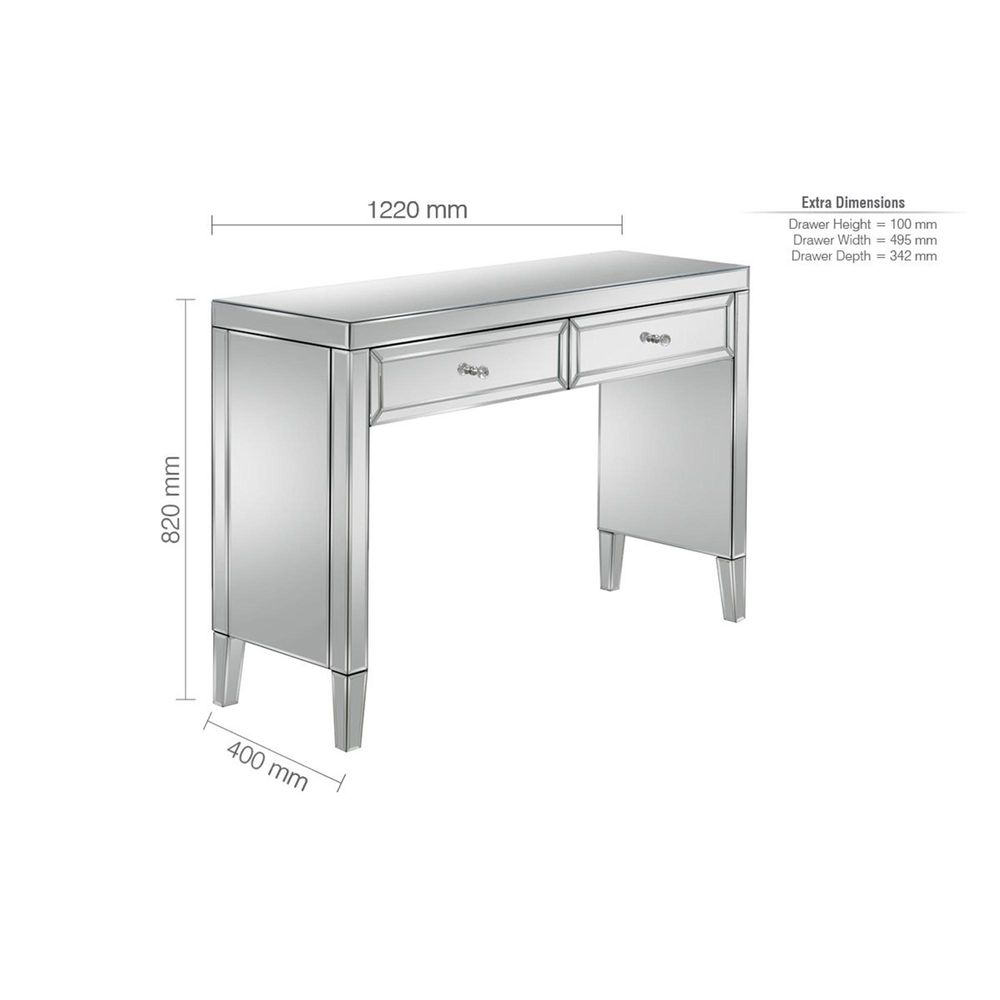 Item Code: VAL2SBMIR The beautiful and glamorous Valencia 2 drawer sideboard will be a stylish addition to any bedroom. Constructed from a MDF frame this stunning range features a mirrored finish with bevelled edges and elegant mock crystal handles.Cleaning and Care : Wipe with dry cloth