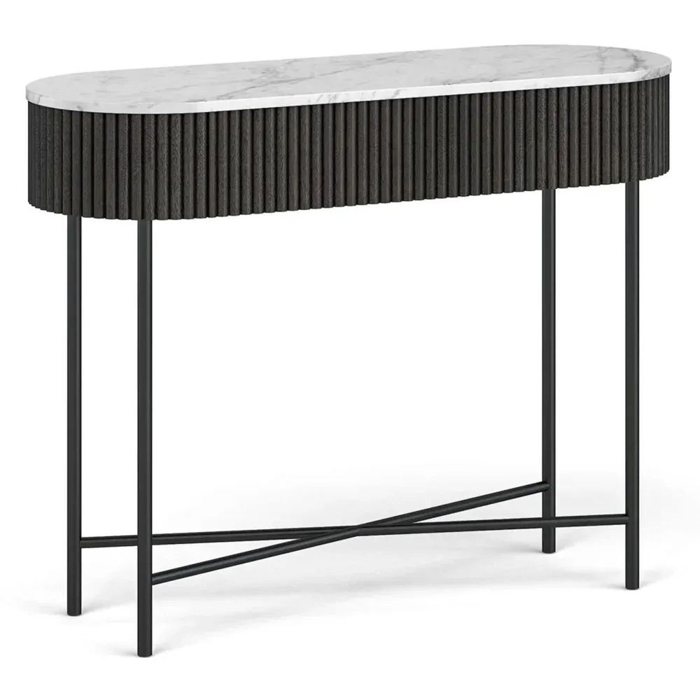 Lucas Black Console Table - Fluted - White Marble Top