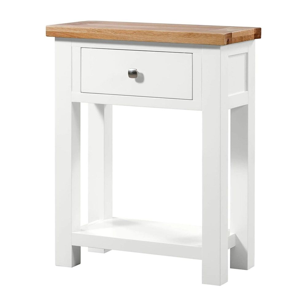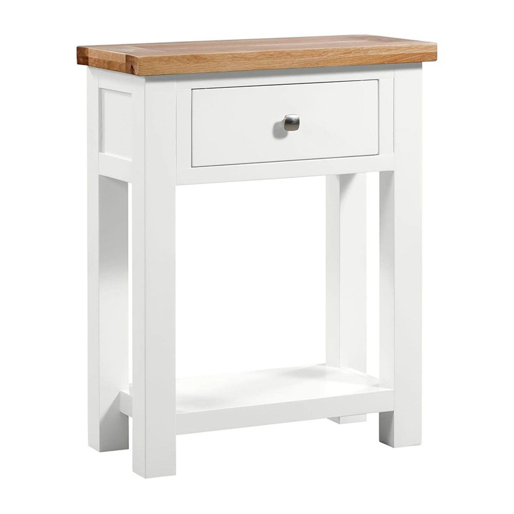 Elegant in form and practical in function, the Lundy White Painted 1 Drawer Console Table brings timeless design into your hallway, living room, or bedroom. With its fresh white painted body and contrasting light oak lacquered top, this piece offers a clean, sophisticated look that blends beautifully into a range of interiors.