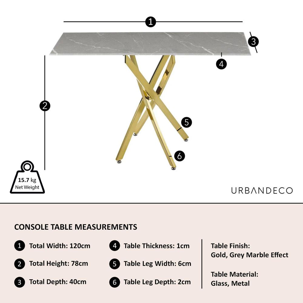 Clearance - Chopstick Grey Glass Console Table with Gold Metal Legs