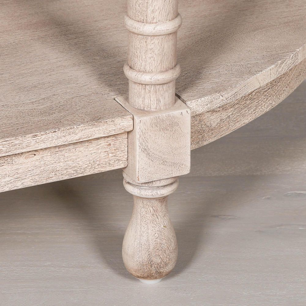 Item Code: AFC559 Acacia wooden curved demi lune design console table with lower storage shelf.