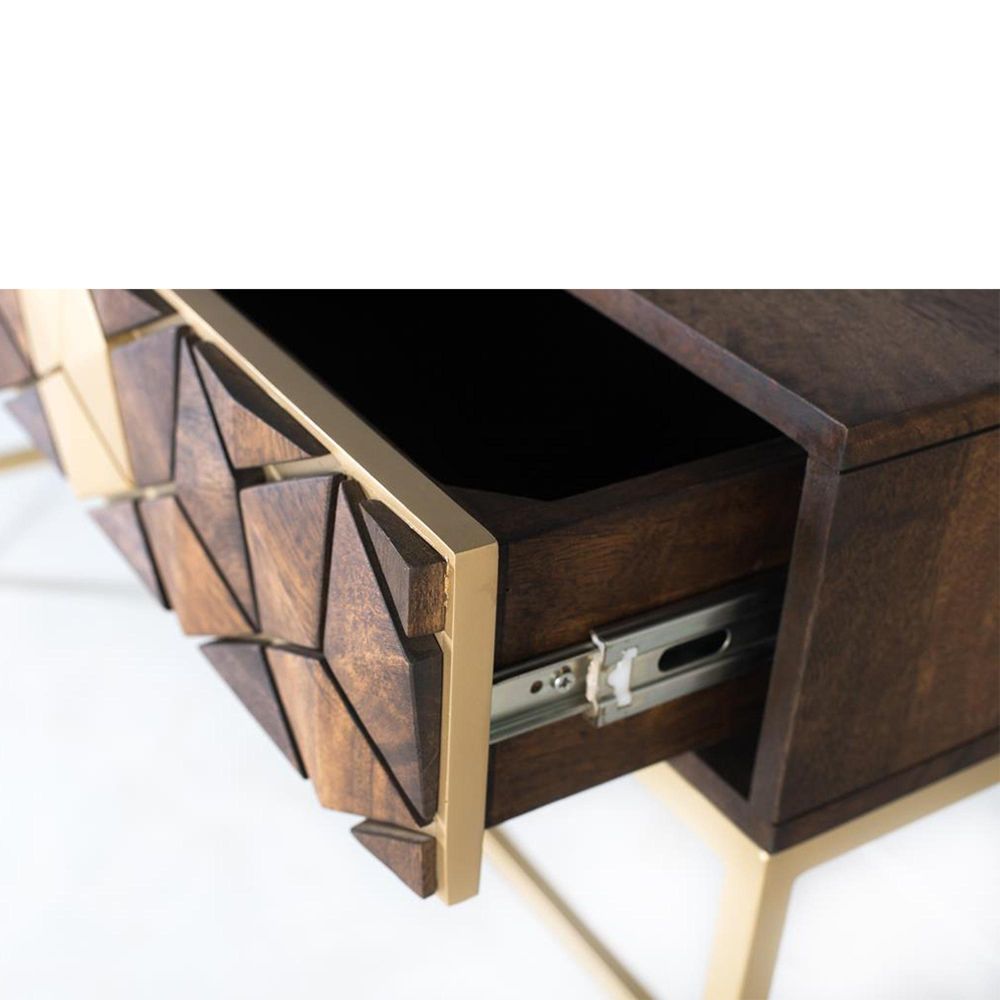 Caltan Console Table - 2 Drawer - Walnut Mango Wood and Gold - Geometric
