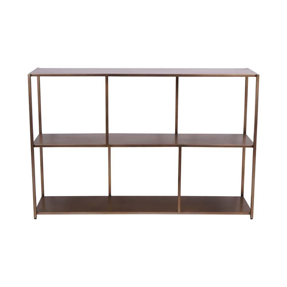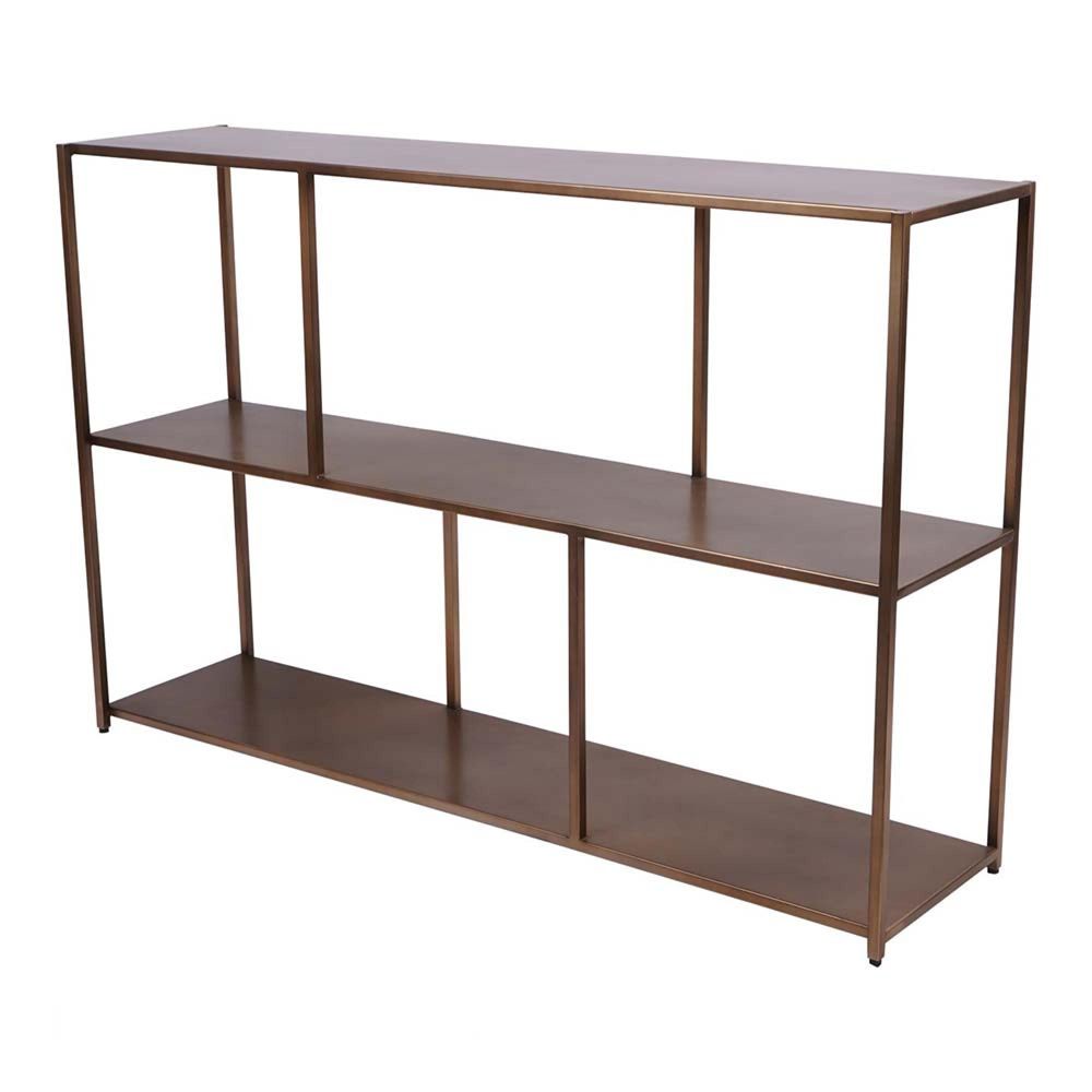 Item Code: 706117 A masterpiece of modern design, the Brooks console table features a high-quality metal frame with a hand distressed gold finish. Its geometric lines and minimalist aesthetic showcase exceptional craftsmanship, while the robust construction ensures enduring stability. Sleek, sophisticated, and timelessly elegant, this piece is a statement of contemporary class. With its clean lines and minimalist silhouette, this console table is perfect for entryways, hallways, or living rooms, offering a stylish surface for decorative objects, lamps, or vases. The Brooks collection includes shelving unit, console and coffee table, available in either charcoal or gold finishes.