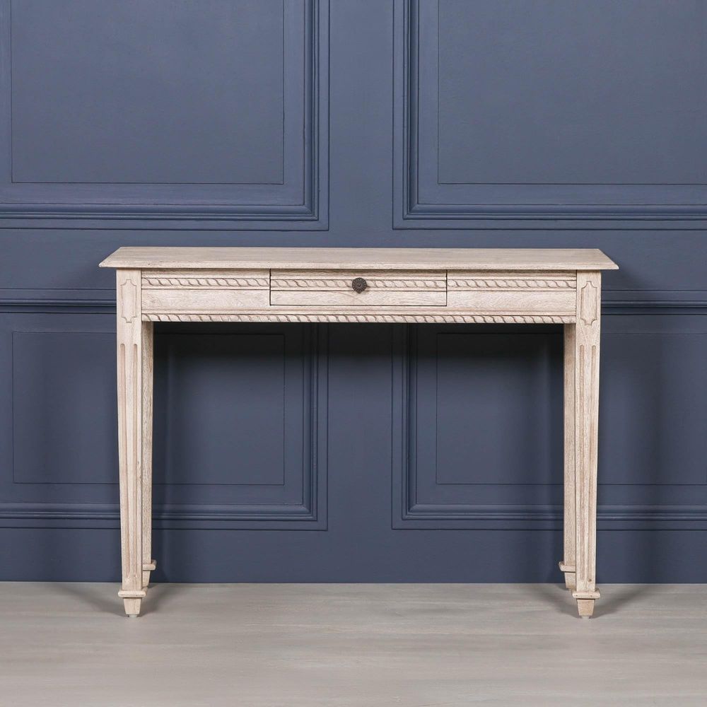 Item Code: AFC105 Acacia wooden table with one drawer. Ideal for use as a dressing table or hallway table. Finished in acacia wood with intricate detailed carvings.