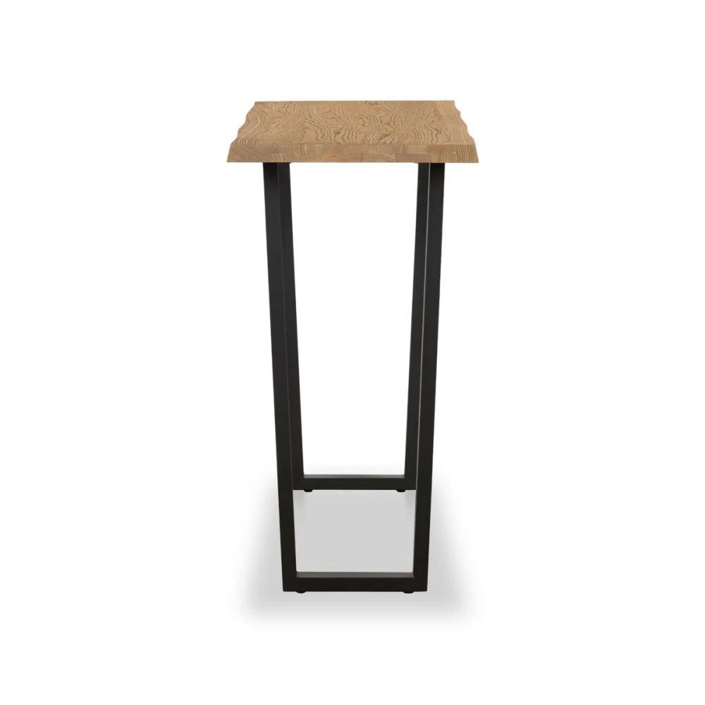 Bring a touch of industrial sophistication and practical style to your home with the Jersey Oak Industrial Console Table. Crafted from solid oak with a sandblasted waxed finish, this piece showcases the natural beauty of the wood grain while offering lasting durability. Its live-edge styled top paired with a sleek black metal frame delivers a modern, handcrafted look that complements any living space or hallway.