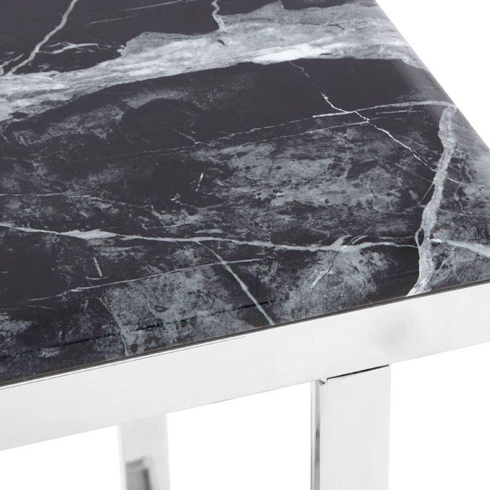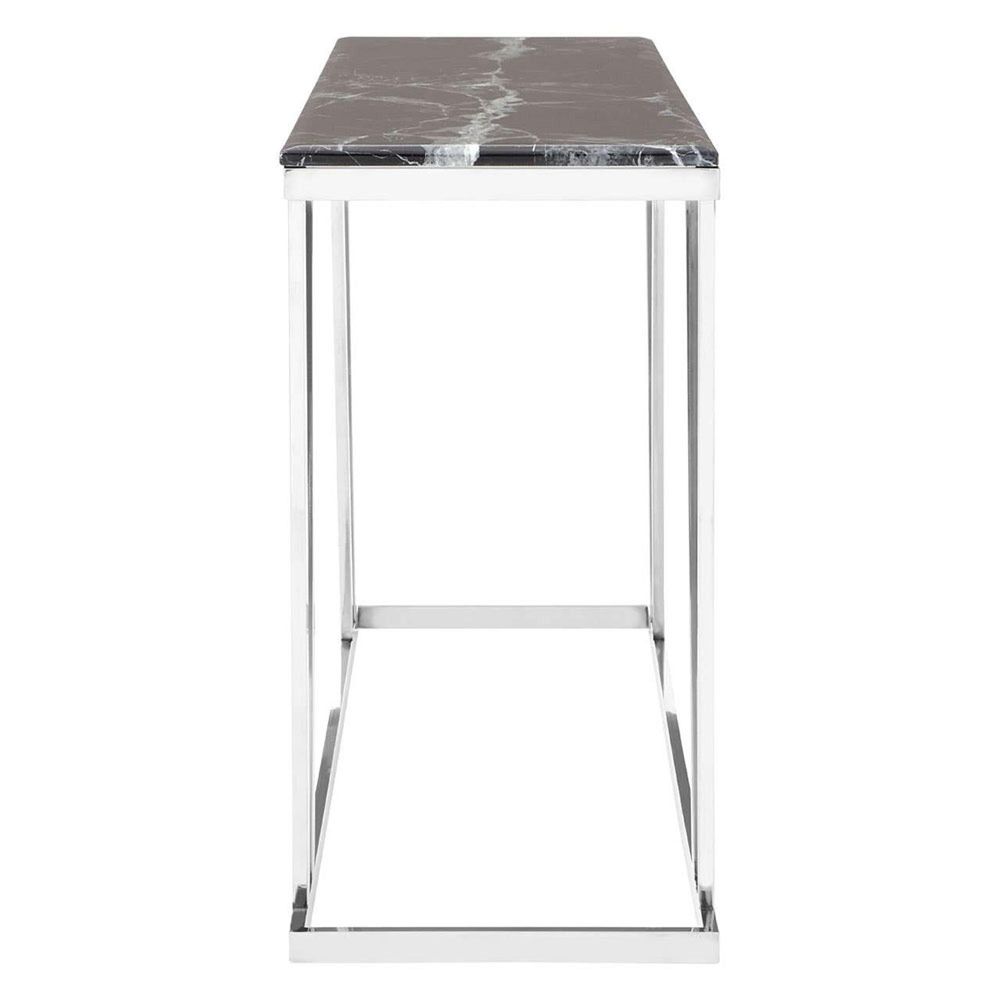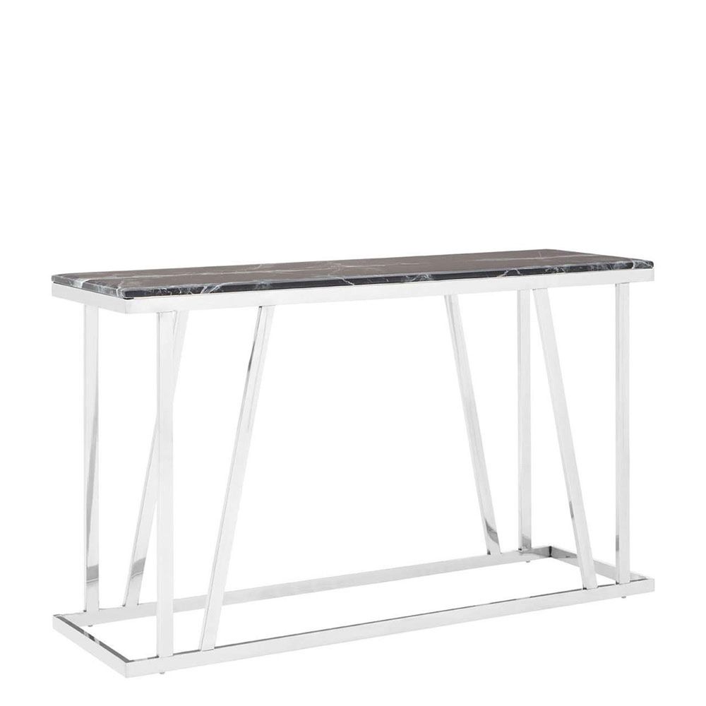 Item Code: 2405425 The stylish Ackley console table boasts a smooth stainless steel frame with a reflective chrome finish creating a luxe aesthetic.The Ackley console table is a comtemporary statement piece boasting reflective finish. Created from smooth stainless steel, the cool metallic finish of the table's frame contrasts with the black marble top.