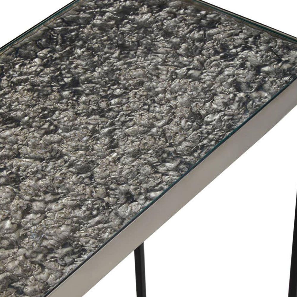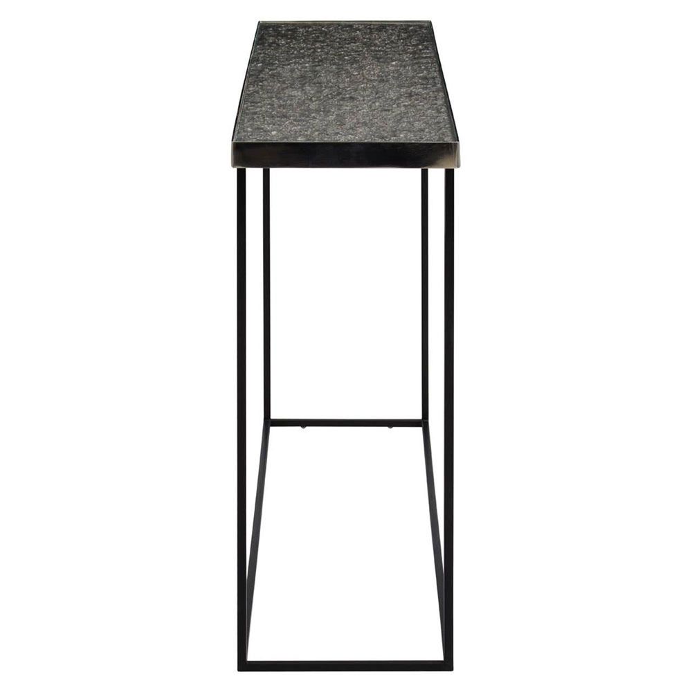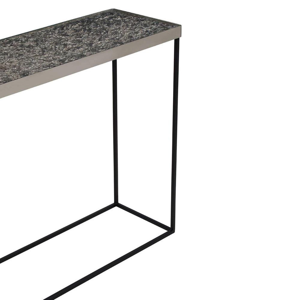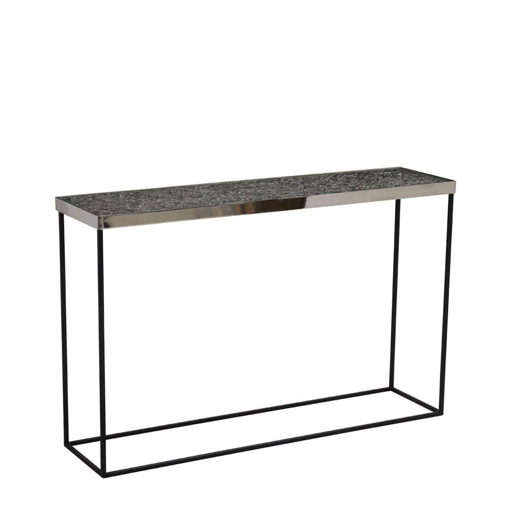 Item Code: 5529568 The Akola contemporary console table has a metallic silver top with a sturdy structure of legs finished in a black shade.This sleek and modern console table has a metallic silver finish tabletop resting above a sturdy black metal structure with interconnected legs. This contemporary table goes perfectly well with modern and minimal interiors.Free DeliveryDelivery & Service Highlights: