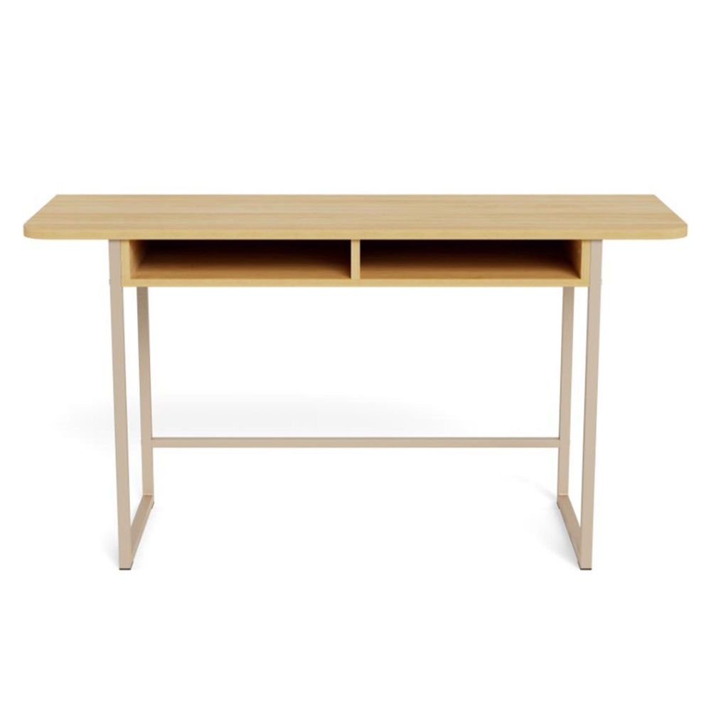 Item Code: 111230 Darlington rectangular console table, top oak rough melamine, Sledge base made of grey rough powder coated steel with open compartment. This rectangular console table is both a stylish and practical addition to the home interior. The combination of oak decor and grey steel creates an inviting aesthetic. With two open compartments, it offers convenient storage. Place it in the entrance or living room - it will look just as good. FSC certified.Free Delivery