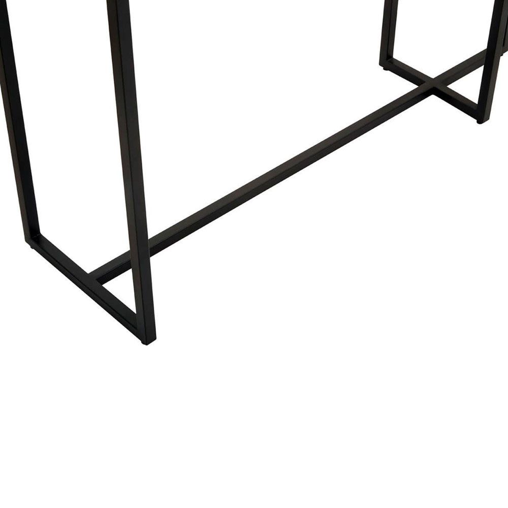 Item Code: 5528769 A mix of clean and rounded lines combine to create the quirky design of this console table.Featuring an elegant juxtaposition of style and form, this console table has circular smoked mirror tops positioned at different levels. The black finish frame extends to support the large and small tabletops through clean, asymmetric lines.