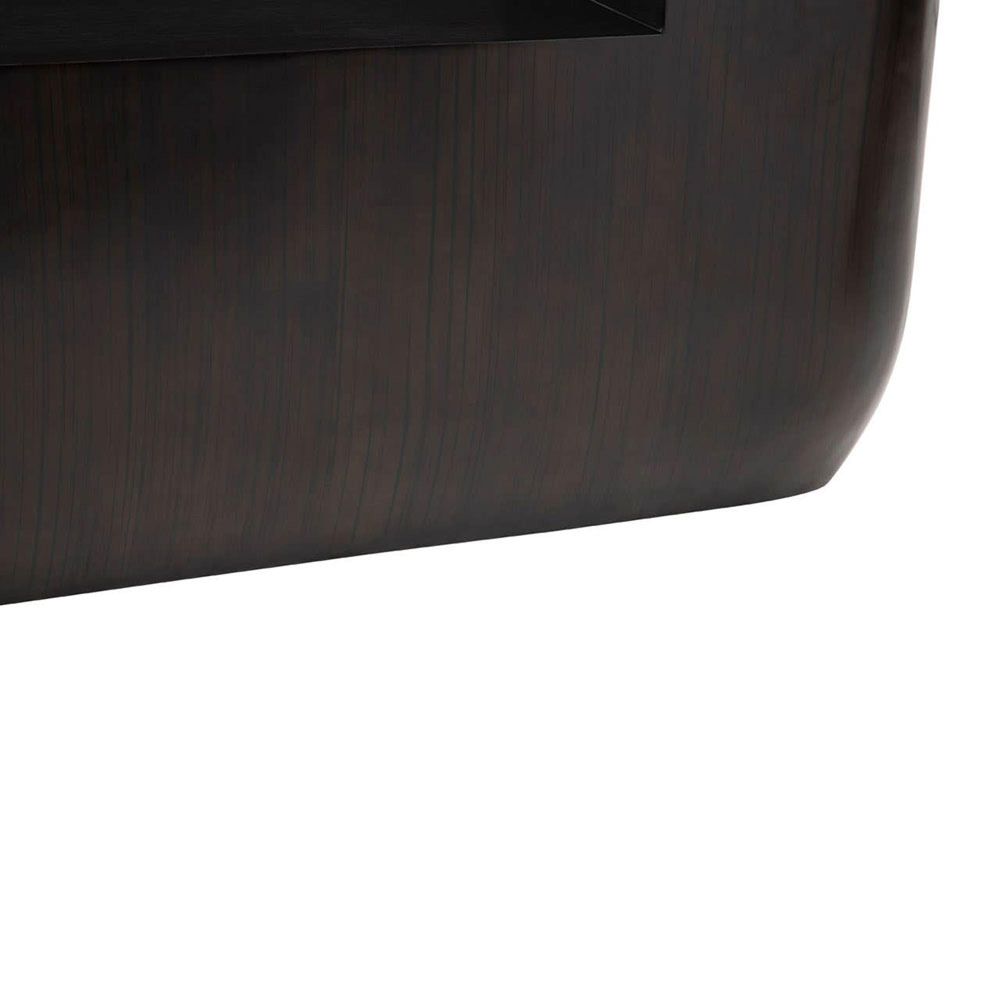 Item Code: 5527574 Ideal for urban decor, this console table will be a simple yet dramatic addition with its seamless design.With its oblong design, this console table features round edges that contribute to its contoured aesthetic. A hollow rectangular space allows storing magazines and small items. Minimal grain gives the understated design a touch of subtle pattern.