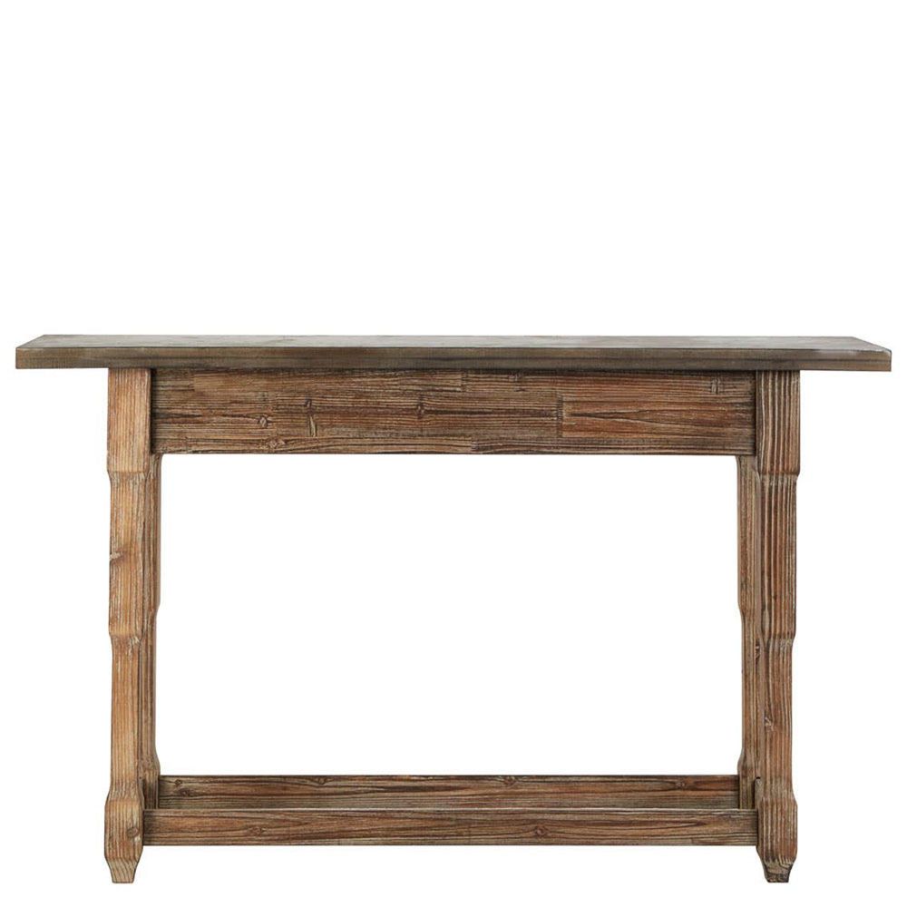Item Code: 2404282 This antique wood effect console table features a grey metal top and a distressed wooden base with carved legs, perfect for a rustic or farmhouse aesthetic.This is a charming antique wood effect console table featuring a grey metal top. The tabletop, with its textured grey finish, provides a robust counterpoint to the distressed, weathered-look wooden base. The table's design features carved legs, evoking a rustic or traditional farmhouse appeal.