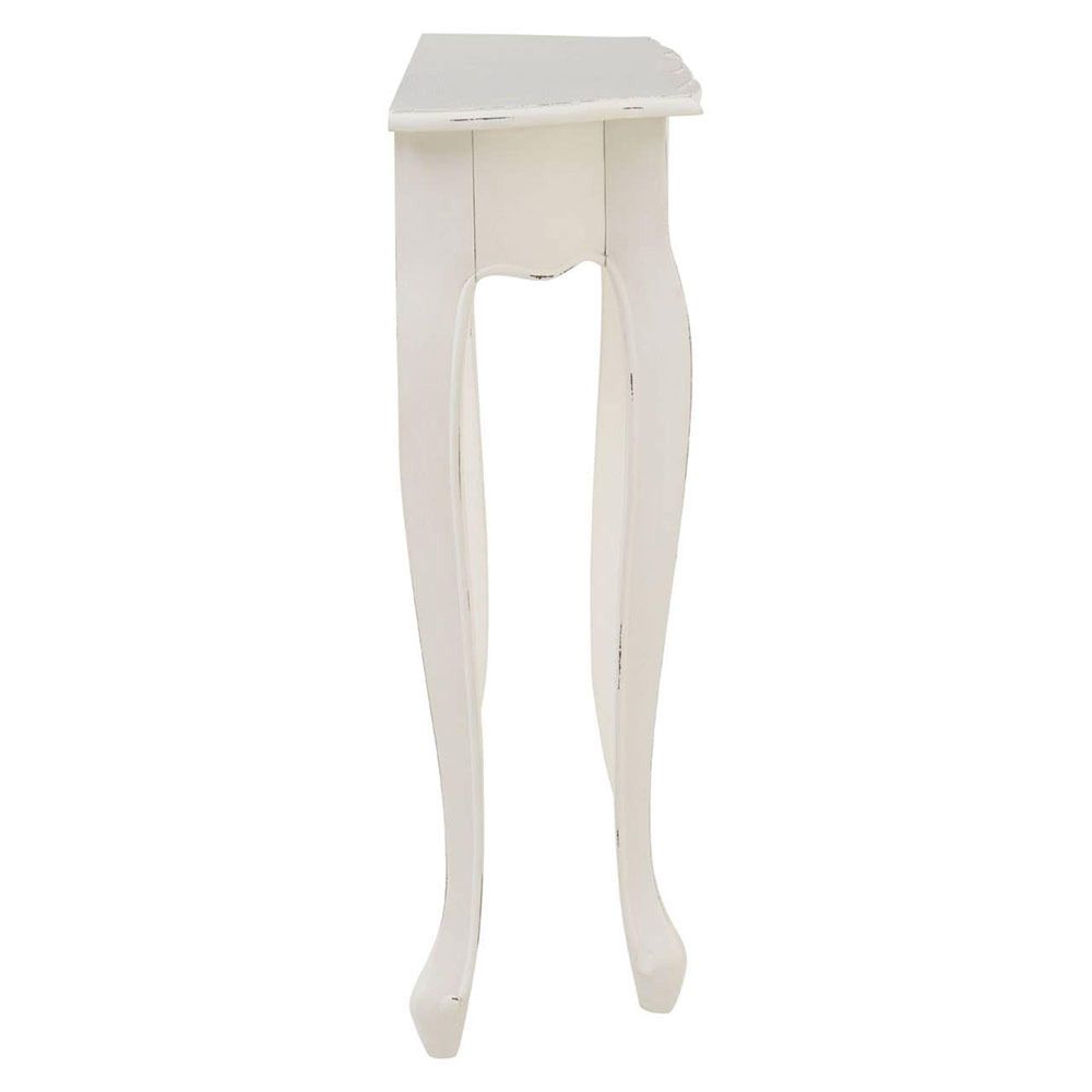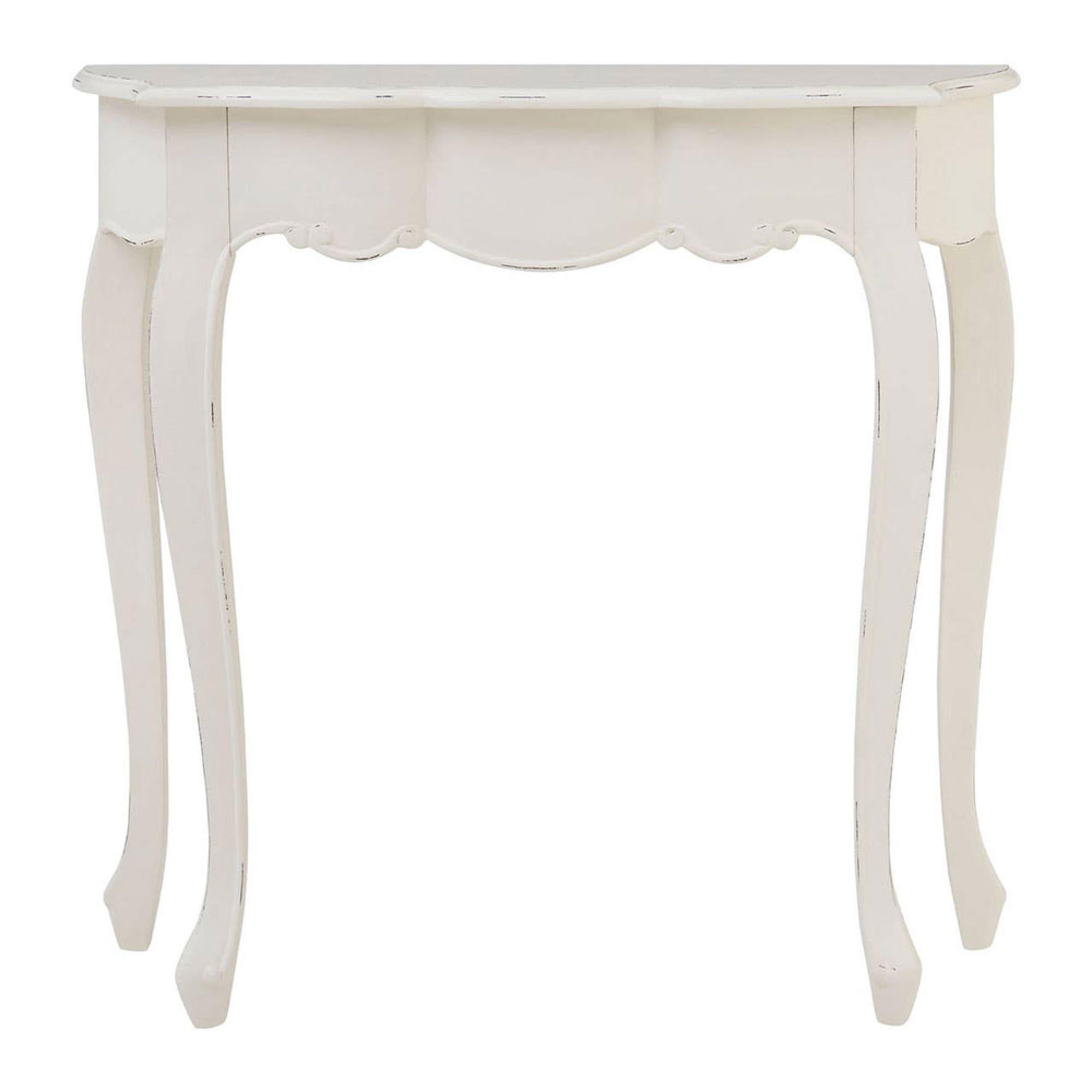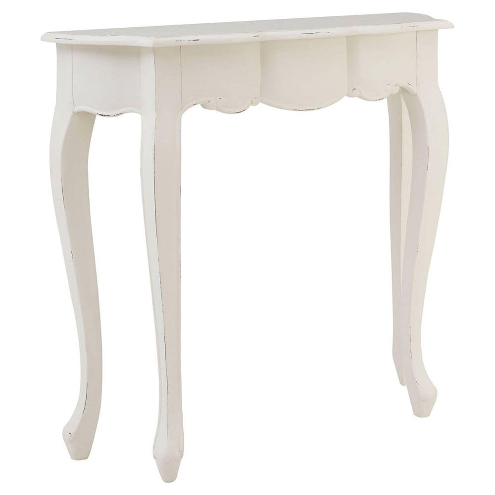 Item Code: 5502127 The Loire console table's white finish features weathering that accentuates its curves while giving it a slightly rustic feel.Made from bayur wood, it has a slightly coarse texture that makes it a tactile piece. Its curving legs and tabletop contribute to its sense of decorative, Regency-style refinement.