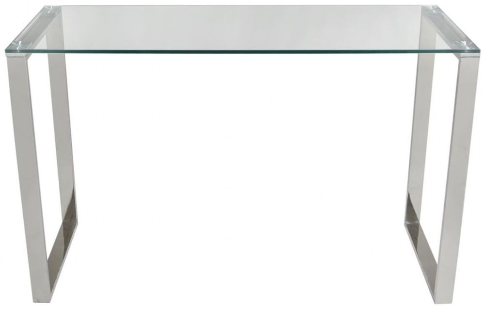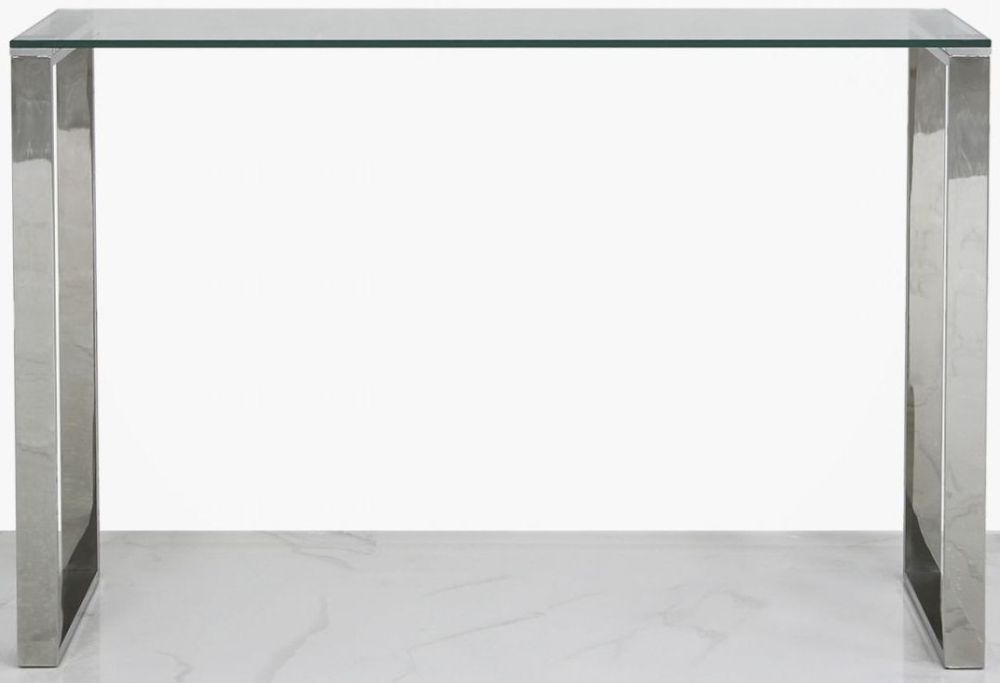 Item Code: MF188-00-GLS-CL Designed to reflect simple, modern and clean living. The Value Harry console table features a stainless steel base with a rectangular design and a clear toughened glass table top.