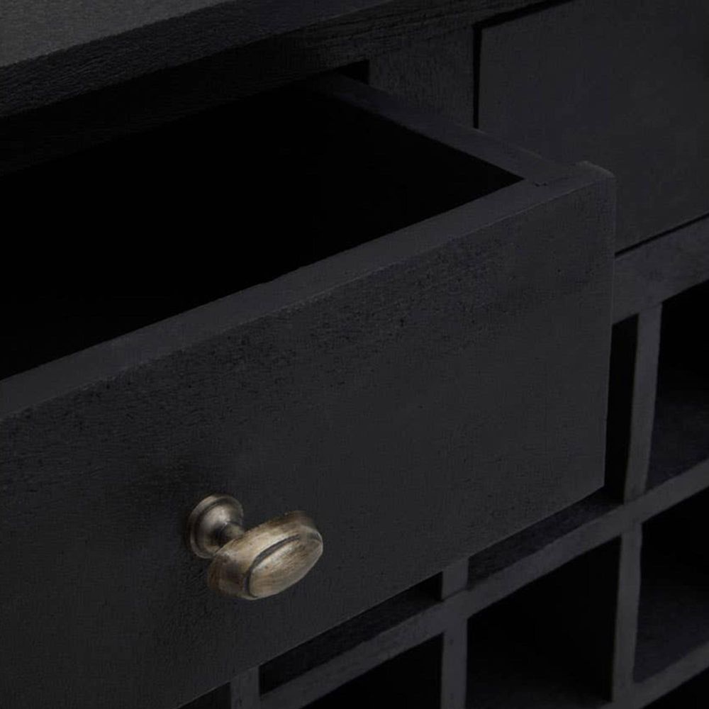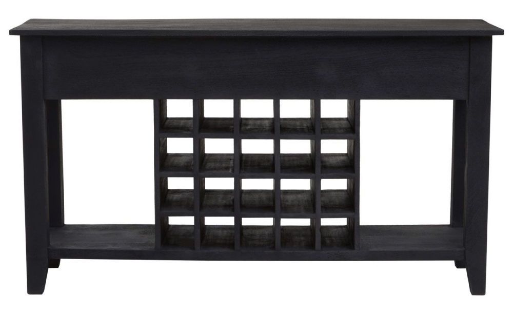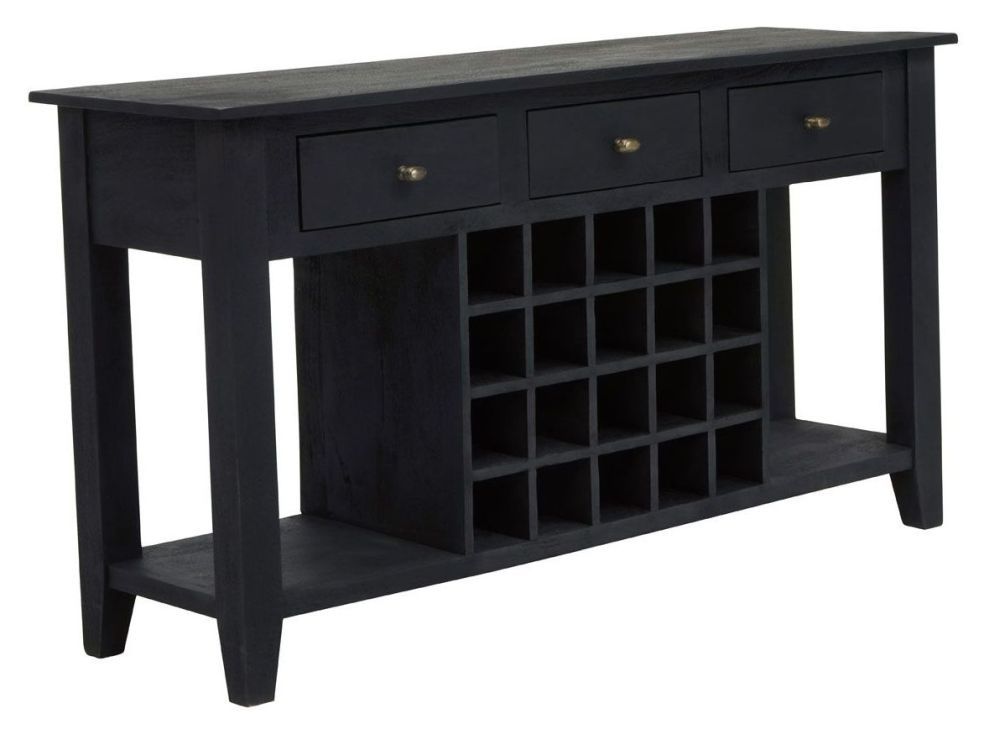 Fusion Console Table - Black Mango Wood - 3 Drawer - with Wine Bottle Storage