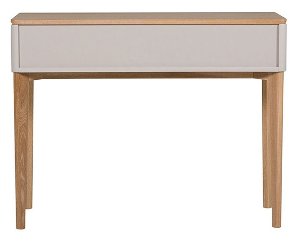 Item Code: Mal-009-OK This cozy console table features two drawers, crafted from durable oak veneer in taupe finish and cashmere oak finish. Perfect for a hallway, living room or bedroom, it adds a timeless touch to any space. The simple and elegant design adds a touch of style to the room. The drawers are ideal for holding your everyday items and the top surface is ideal for displaying photos, vases, and other decorative items.