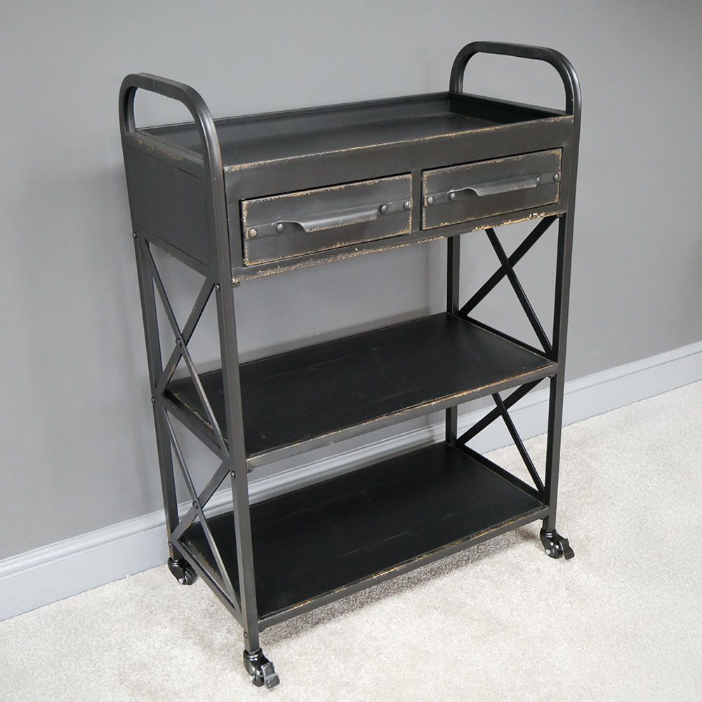 Hall Table - 2 Drawer - Black Distressed - Metal & Wood