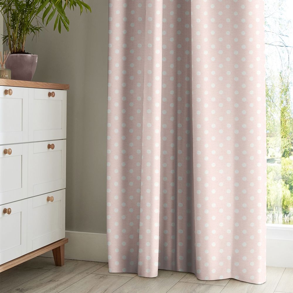 Item Code: KIDF-0008 For a bright and friendly feel, this pastel pink design features a white polka dot pattern for creating a calm sense of openness in your rooms. By focusing on classic colours covering bright primary hues and softer pastel tones, the Cath Kidstons designer collection features roman blinds with vintage patterns and illustrations to so you can find the perfect design for all your rooms. Using a 100% cotton finish, this textured fabric design is perfect for providing a subtle light filtering solution in your home.