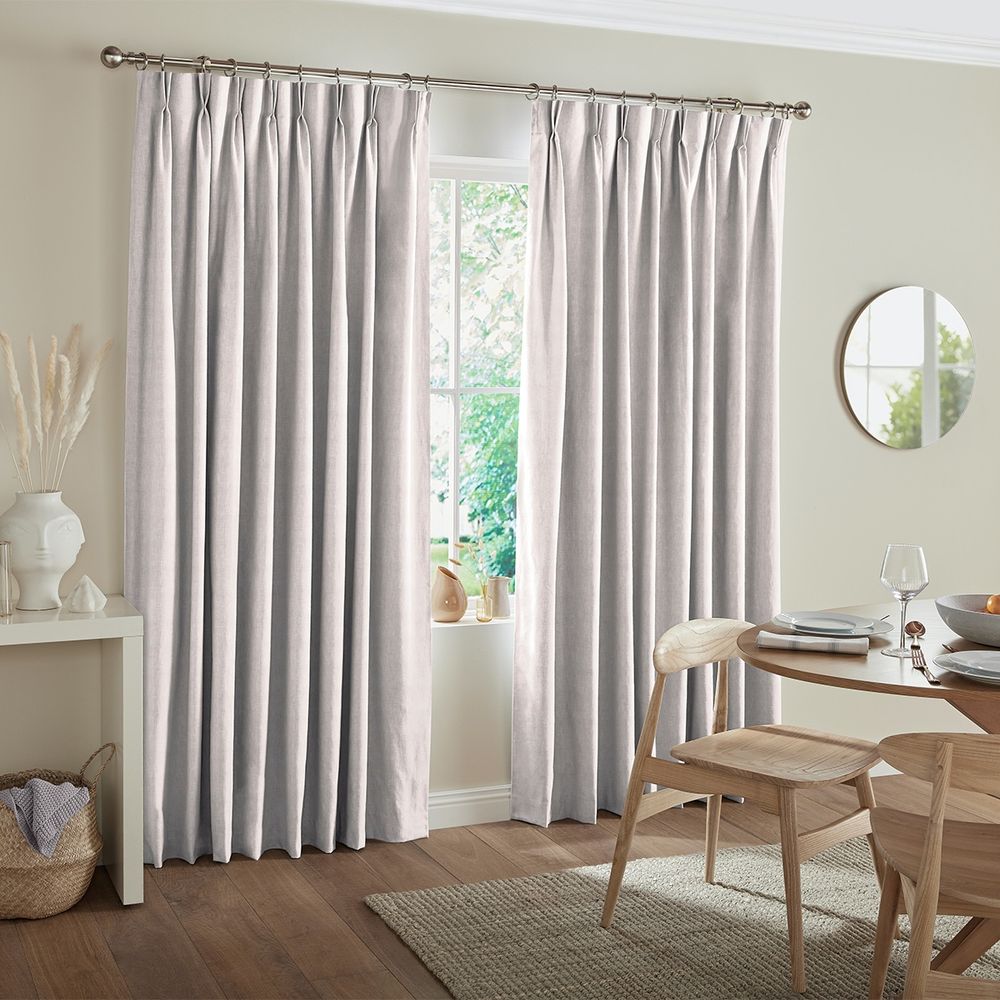 With a luxuriously soft and velvety texture in a pale pink hue, this 100% polyester fabric can create a warm and comfortable atmosphere in your home.