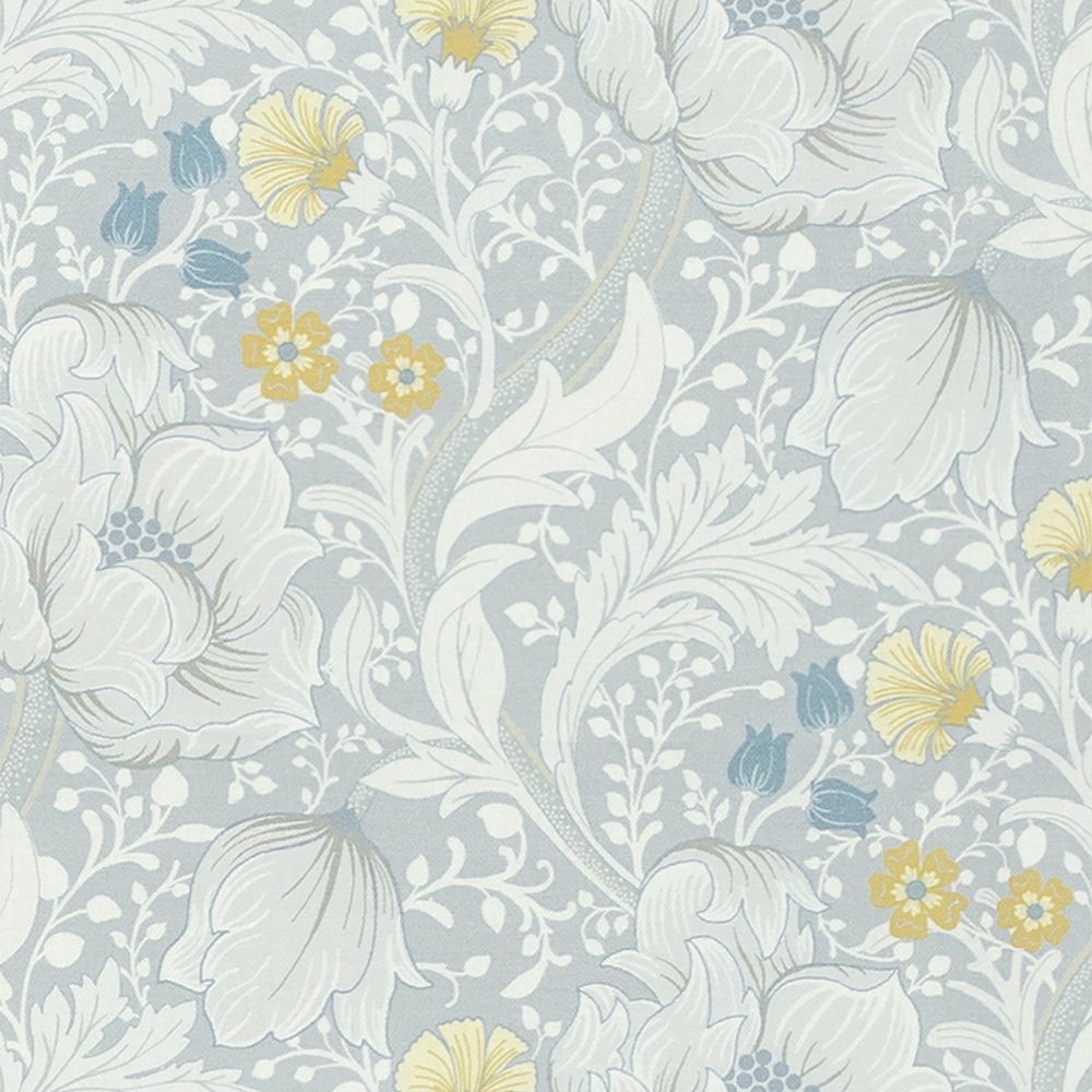 With its detailed floral illustrations with highlights in yellow hues over a cooling silver background, this traditional design can add a sense of natural comfort to any room.