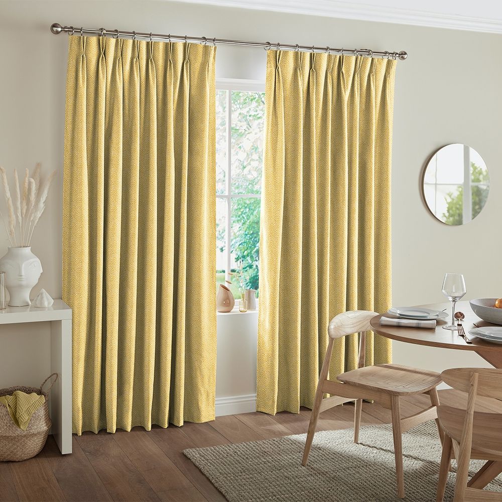 With its textured polka dot pattern of white over a bright and friendly yellow background, this playful design is ideal for adding a sense of warmth to your room.