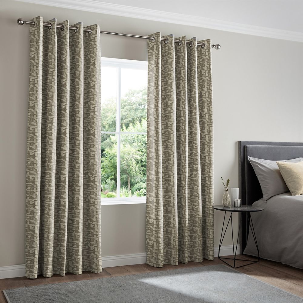 With an eye-catching textured jacquard-weave pattern and subtle silver sheen, this design features a light grey colour to create a bright and cooling atmosphere in any room.