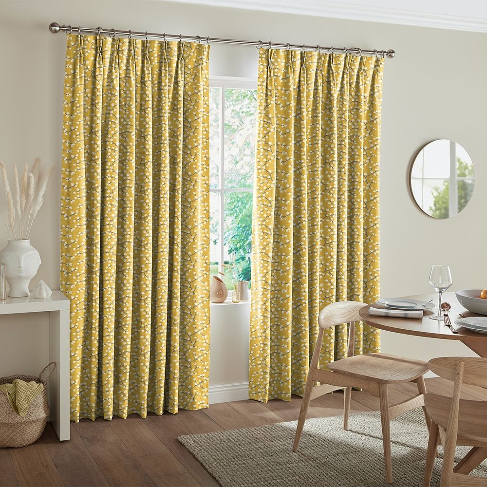 Item Code: ROMF-1765 This natural design uses sunflower yellow background with an abstract floral pattern of pale-silver hues to create a calm and relaxed atmosphere.