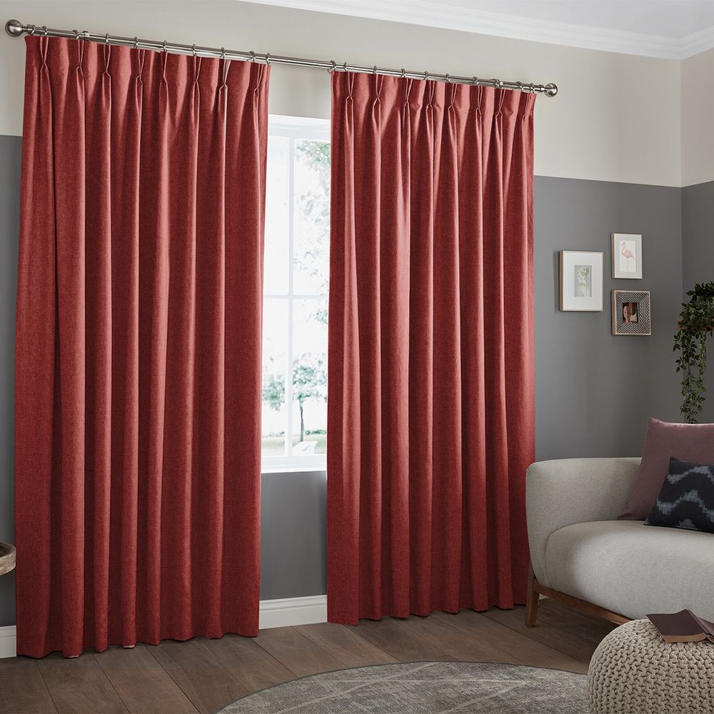 This 100% polyester fabric features a woven-style texture in a rich red hue that can create a warm and passionate energy to suit your rooms existing decor.