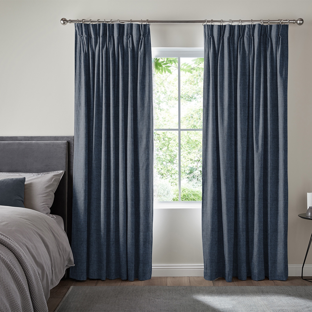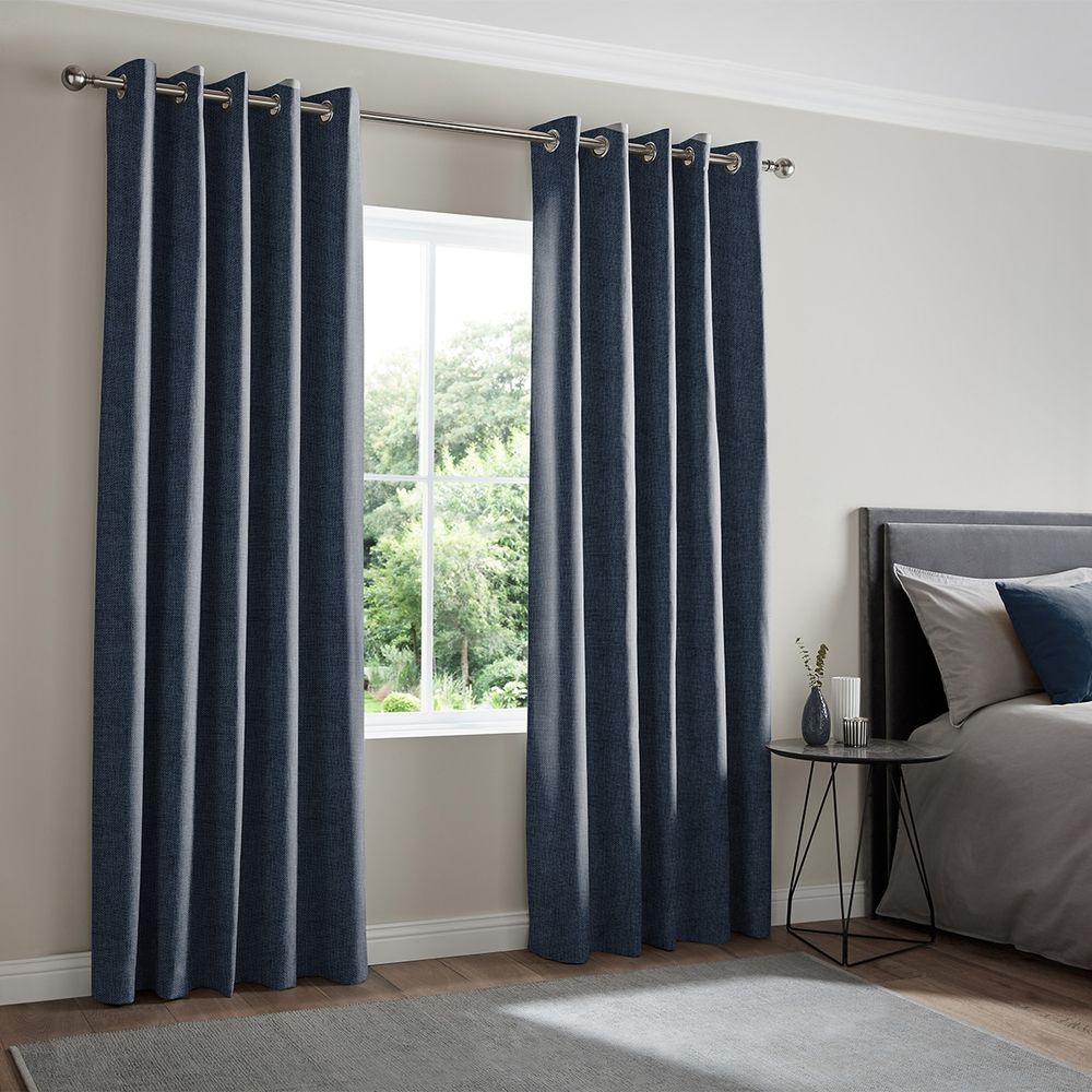 This fabric features a textured and woven pattern in a dark blue tone to help you create a serene and comfortable energy in your home.