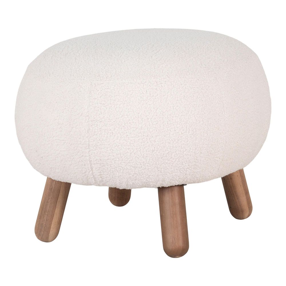 Crafted with care, the footstool features a foam-padded seat wrapped in a plush polyester fabric that mimics the inviting look and feel of natural lambskin. The internal wooden frame and solid legs offer dependable support, making it suitable for everyday seating or as a comfortable footrest. Whether placed beside a sofa, positioned at the end of a bed, or used as an occasional seat, this piece blends function and style with ease.