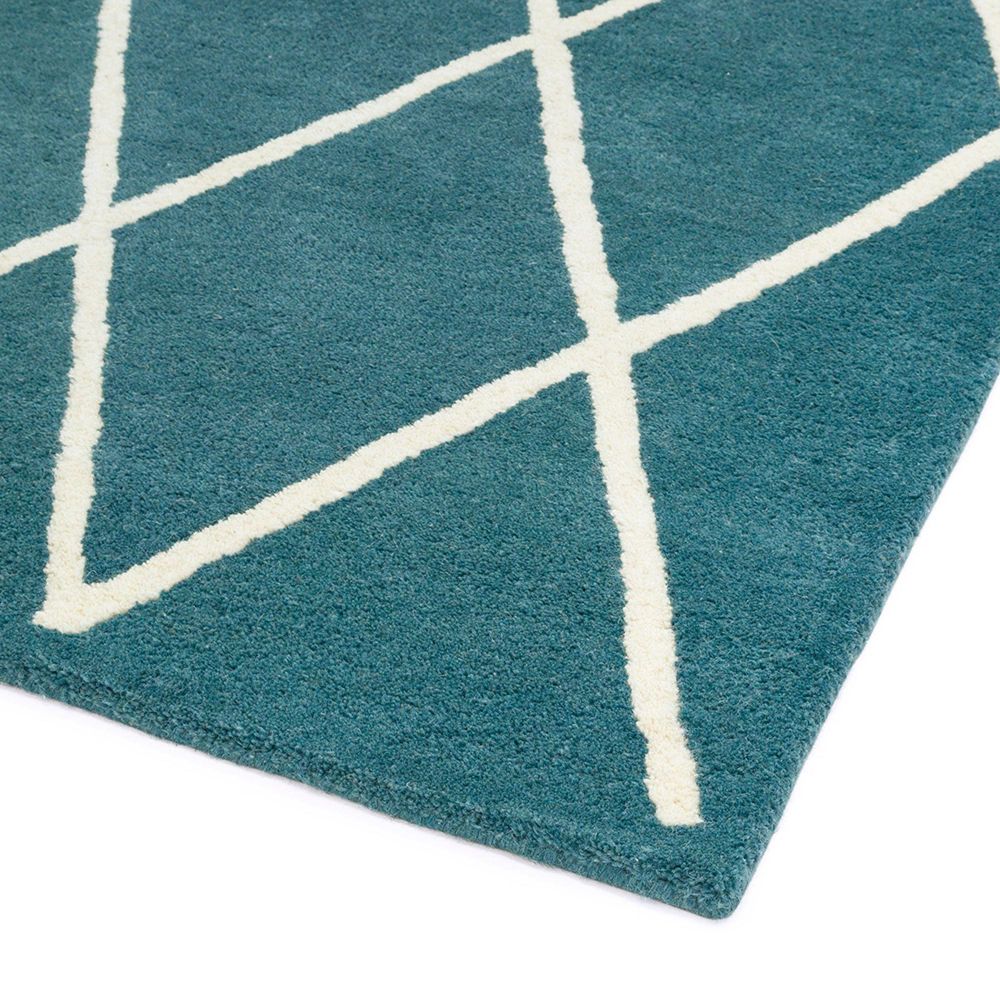 Item Code: ALBA080150TEAL Woven from 100% wool using a hand tufted technique, the Albany collection is offered in a choice of striking geometric designs in a selection of two tone colours.