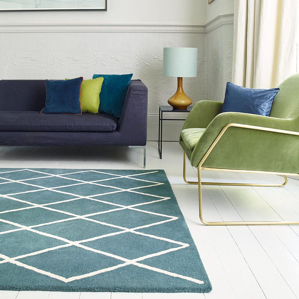 Contemporary Design Albany Rug - Teal Diamond - Sizes Available