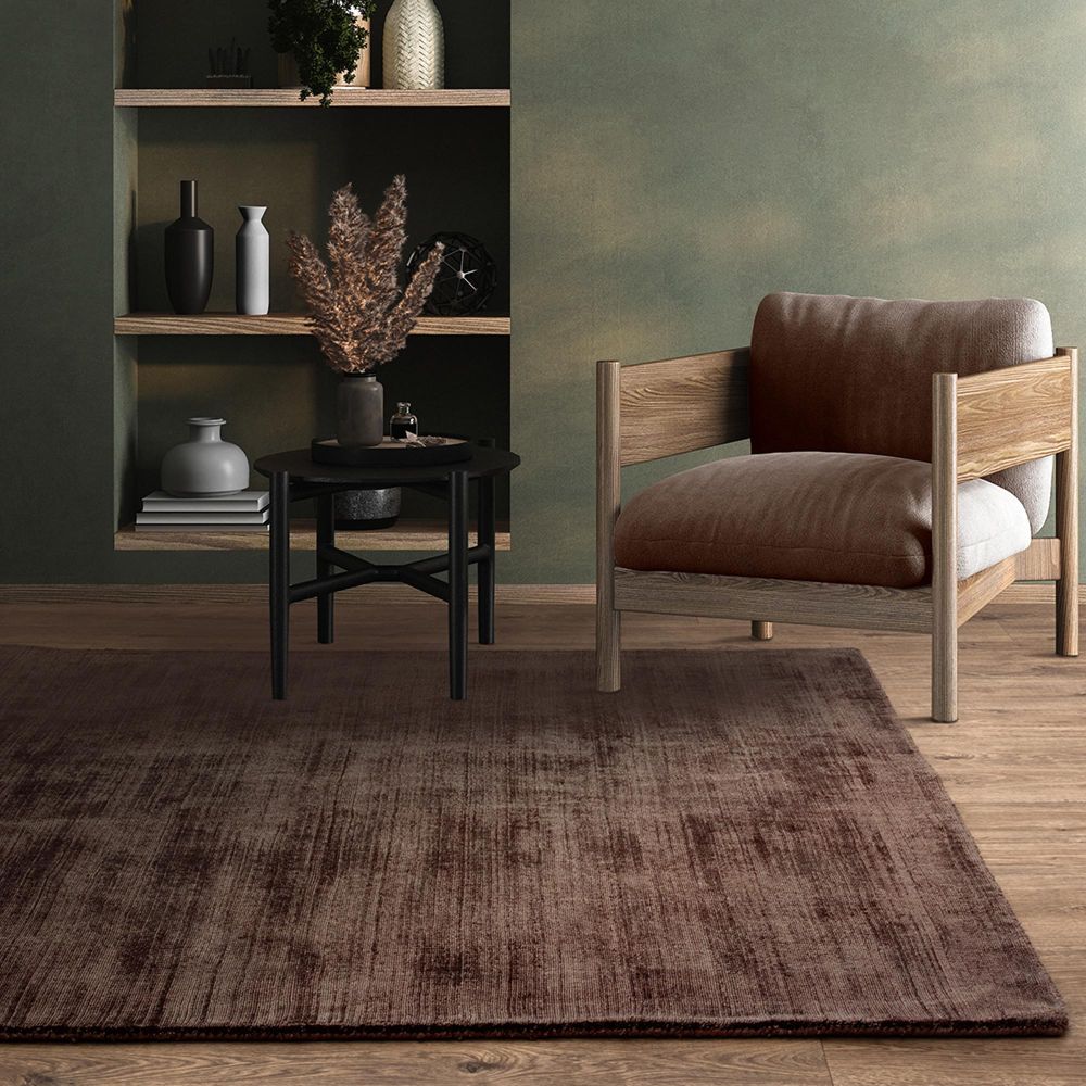 Item Code: BLAD120170CHOC Hand woven viscose rugs with a tip-sheared distressed effect, Blade features a light reflective high sheen across a spectrum of shades.