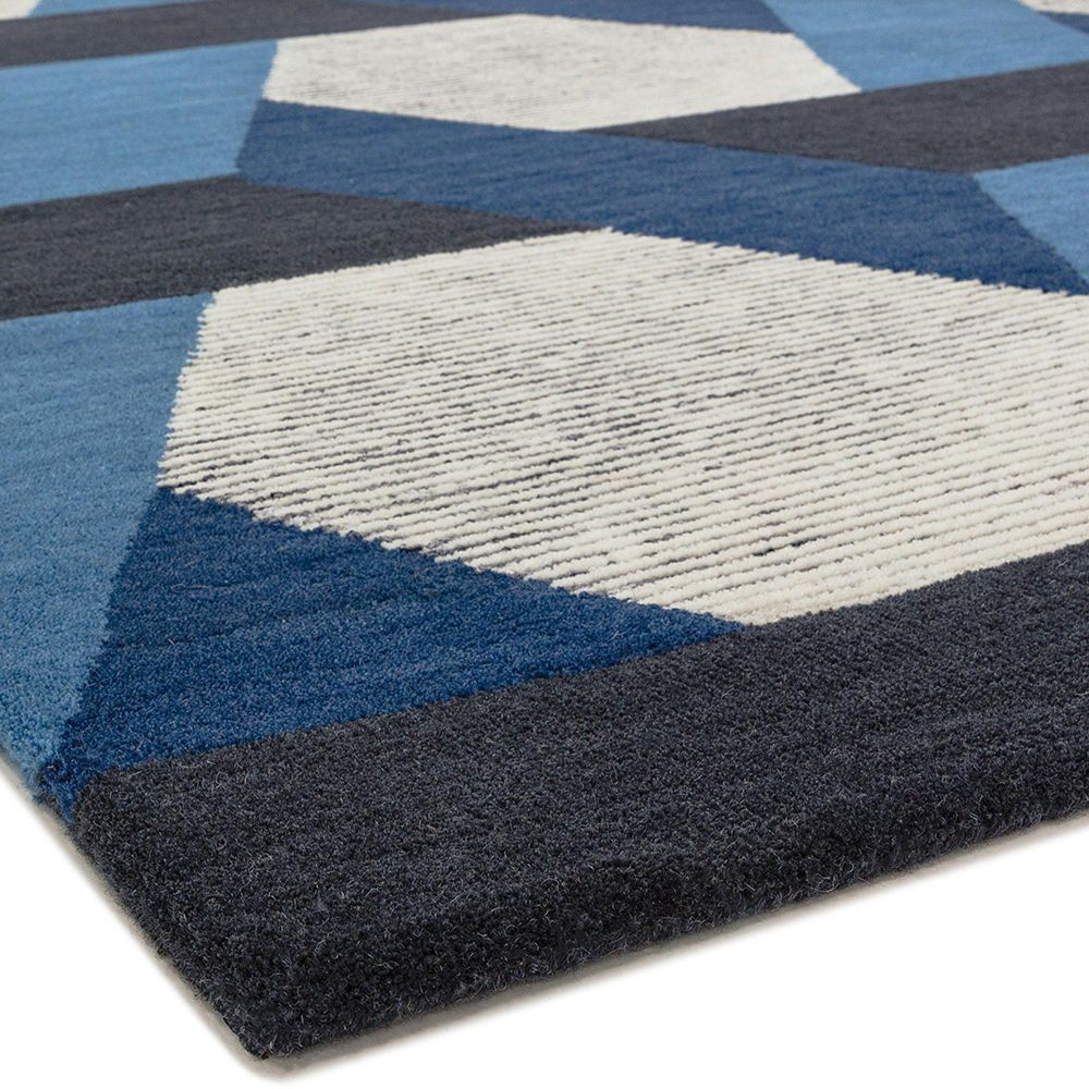 Item Code: CAMD160230BLUE Woven from a blend of pure New Zealand wool and viscose using a cut and loop method to create a textured look and feel, Camden is a contemporary collection featuring a colourful geometric design.