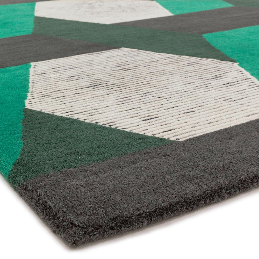 Item Code: CAMD160230GREE Woven from a blend of pure New Zealand wool and viscose using a cut and loop method to create a textured look and feel, Camden is a contemporary collection featuring a colourful geometric design.