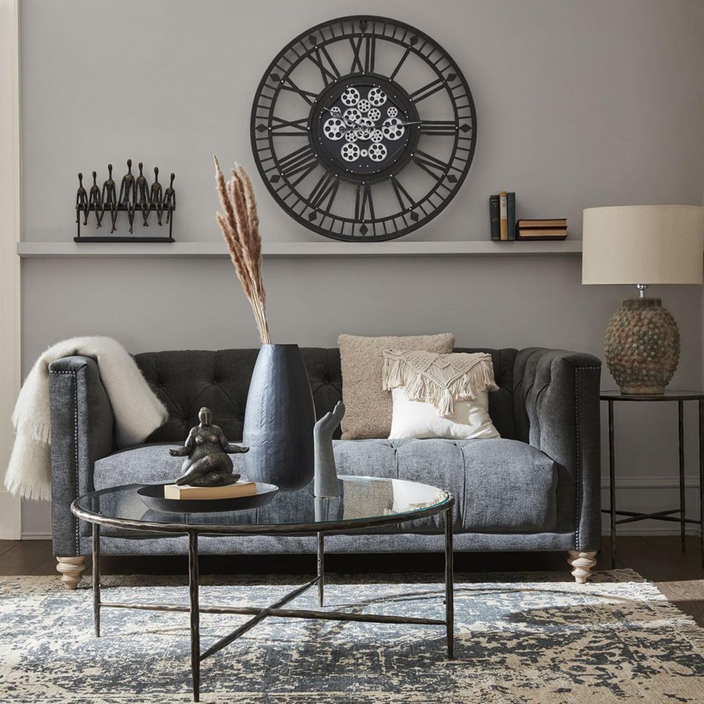 Item Code: 704201 The Gibbons Grey Skeleton Clock is a beautiful piece for your wall. Powered by 1xAA battery, the skeleton style clock allows you to see the central moving cogs (powered by separate 1.5V 'D' battery). The design itself is finished in a grey matte rustic metallic and has decorative Roman numerals and distinctive border. Please note that this clock produces a gentle ticking sound, adding to its nostalgic charm.Free Delivery