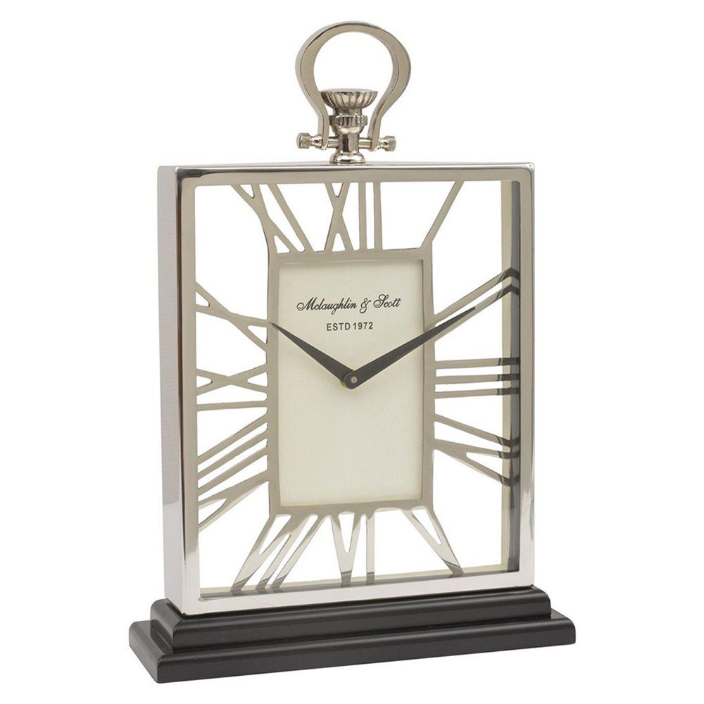 Item Code: 702050 Contemporary nickel and black skeletal mantel clock with glass front.Free Delivery