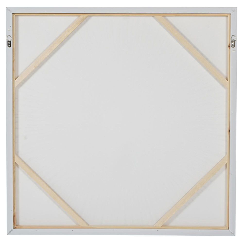 Item Code: 704829 Framed Canvas measuring 100cm x 100cm and featuring an abstract solar symbol with gold foil finishing. The canvas is framed with a white wood effect frame. It hangs this way up only, on two integral hooks. Wall fixtures not included. Hand finished to ensure variations in foiling finish occur.Free Delivery