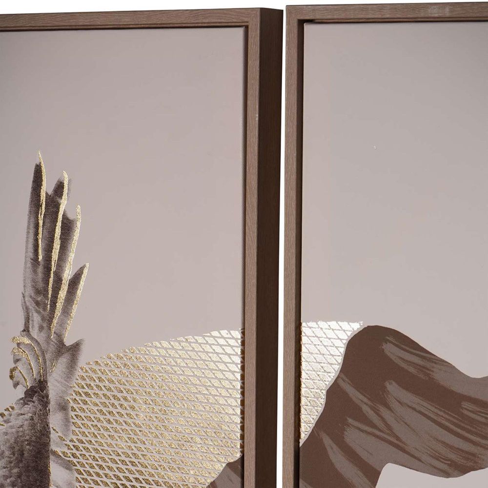 Our Stunning Tropical Bird 3 Piece Framed Canvas, brings a touch of elegance and sophistication to any interior. Featuring two macaws enhanced by a luxurious golden foil finish and detailed textures, making a bold and impactful statement in your space. Each canvas is a window into the enchanting world of these majestic birds, set against a backdrop of lush foliage. The natural tones of the artwork, highlighted by the striking emphasis of gold, create a harmonious balance, adding depth and character to your environment. Each individual canvas measures W70x D4xH140cm . The total dimensions of all three canvases hanging together (we recommend 2cm gap between each canvas) would be approximately W210 x D 4 x H140 cmFree Delivery