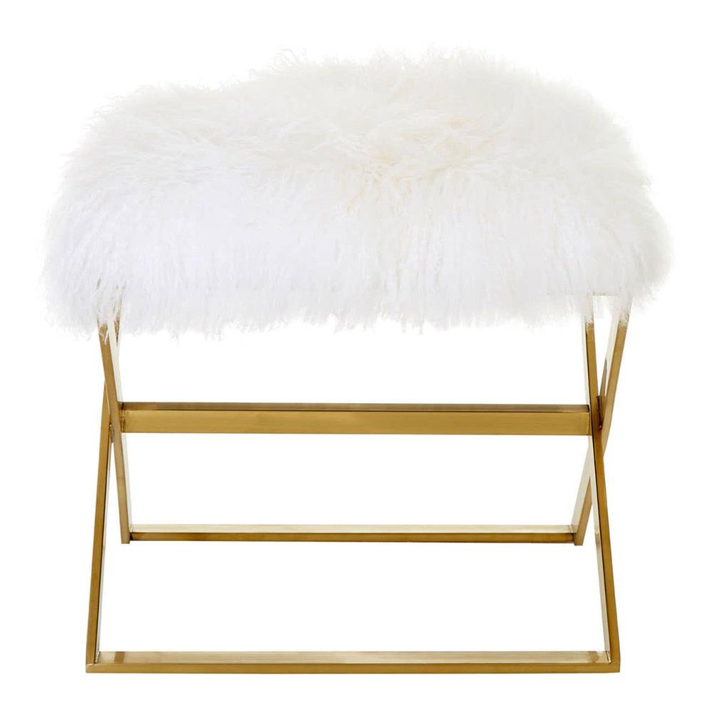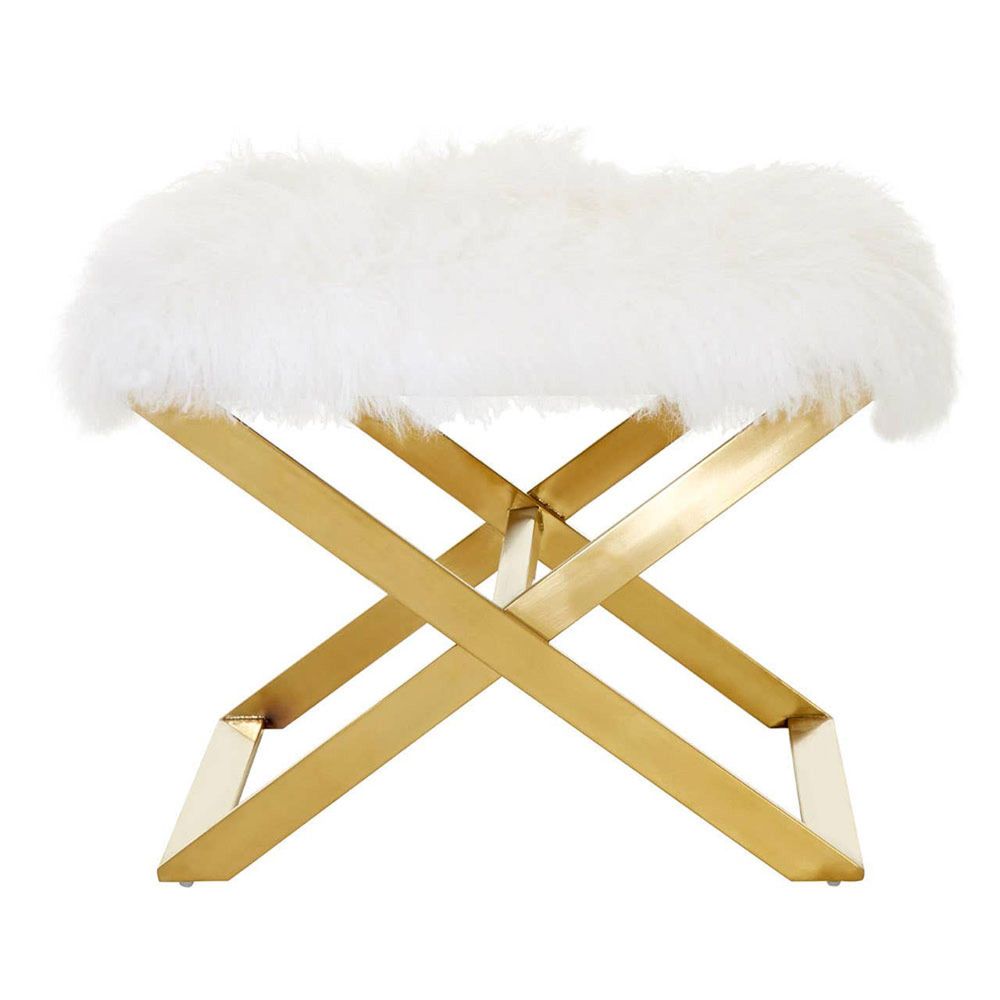 Item Code: 5502456 With its sheepskin upholstery and solid metal base in gold, this footstool adds a glam look to any interior.The seat is covered with white sheepskin to complement the reflective gold finish of the crossed legs. It lends a touch of luxe style to the living room.
