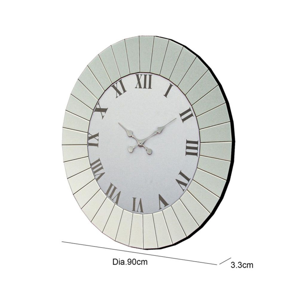 Elevate your living space with this elegant 90cm round mirror wall clock. Its sleek design combines functionality with a modern aesthetic, making it a perfect centerpiece for any room. The reflective mirror surface adds depth and light to your interiors, while the clear numerals ensure easy readability. Crafted with precision, this wall clock blends style and practicality effortlessly. Ideal for living rooms, bedrooms, or office spaces, it complements both contemporary and classic decor.Please note that the product color may slightly vary from the images due to lighting and screen differences.Free Delivery