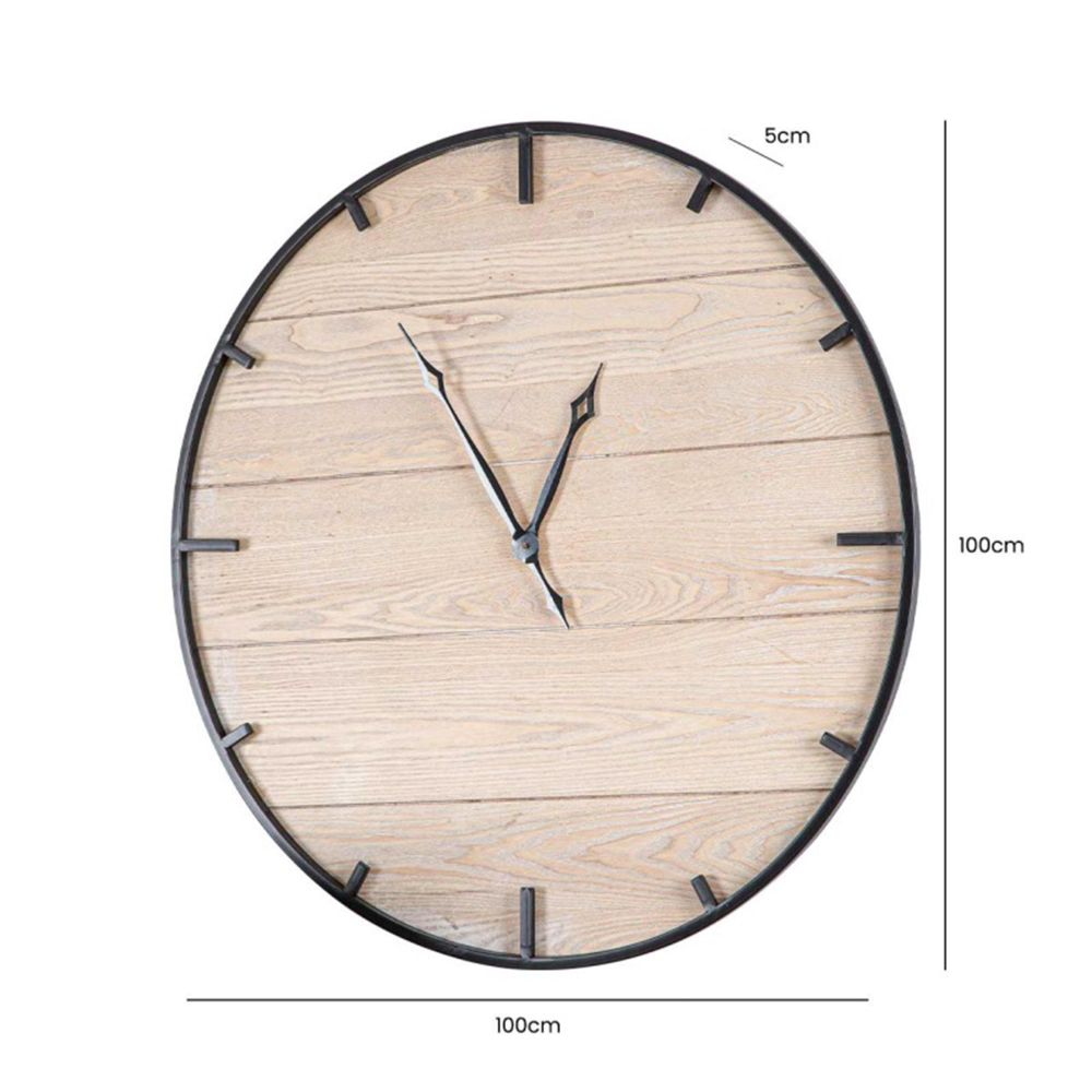 Item Code: SP-CL212-00-NLBL Add a touch of sophistication to your space with this 100cm wall clock crafted from natural and black MDF wood. The combination of natural wood tones and sleek black accents creates a modern yet timeless look. Large, easy-to-read numerals ensure practicality, while the minimalist design complements any decor style. Perfect for living rooms, offices, or hallways, this clock makes a stylish statement while keeping you on time.Please note that the product color may slightly vary from the images due to lighting and screen differences.Free Delivery